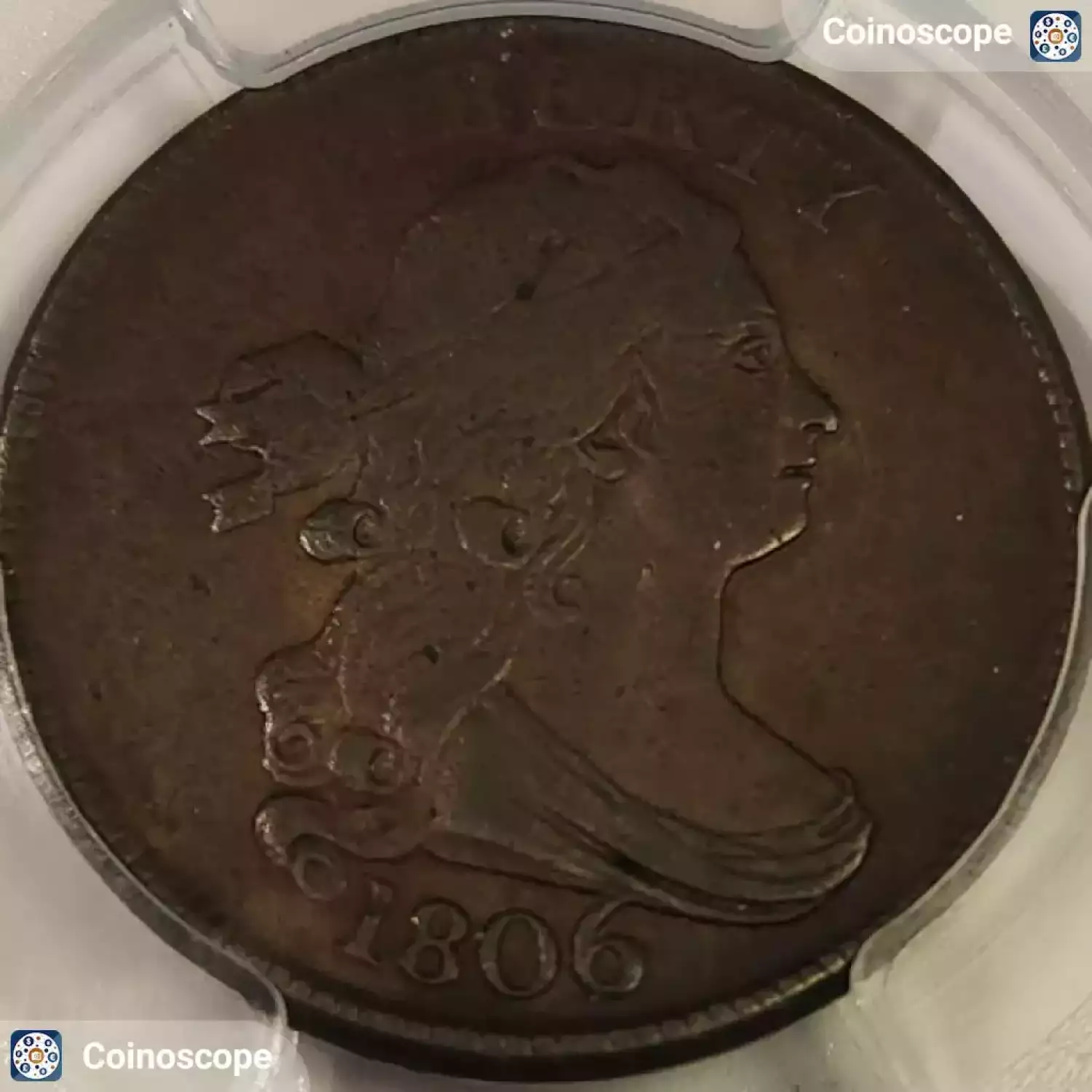 1806 Half Cents Draped Bust 1800 - 08 Copper PCGS VF-30 BN - Rotated Large 6, Stems