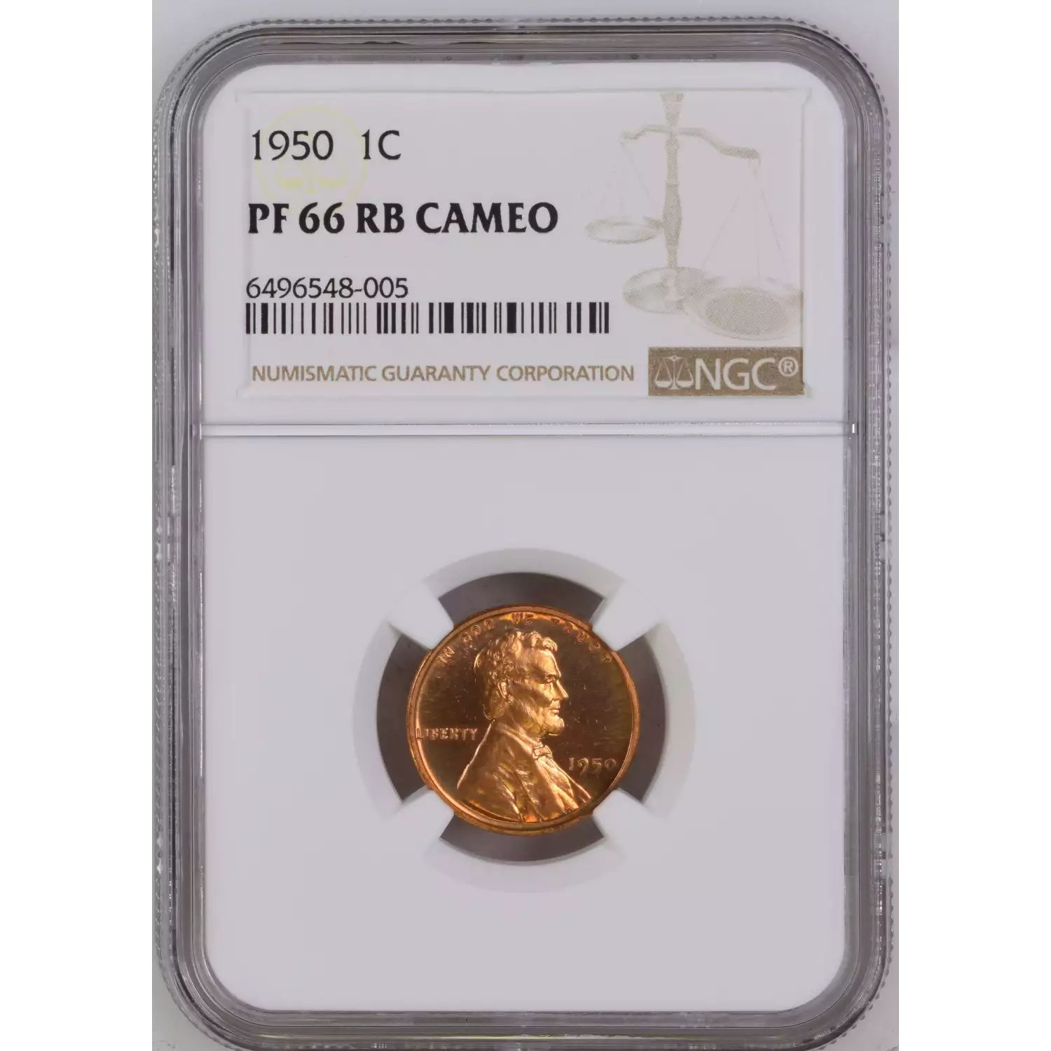 1950 Small Cents Lincoln, Wheat Ears Reverse NGC PF-66 RB CAMEO