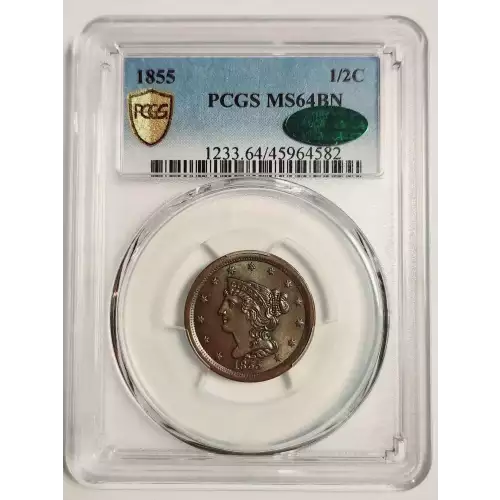 1855 Half Cents Braided Hair PCGS MS-64 BN CAC