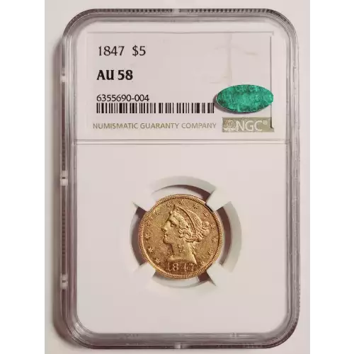 1847 Gold Half Eagles Liberty Head NGC AU-58 CAC
