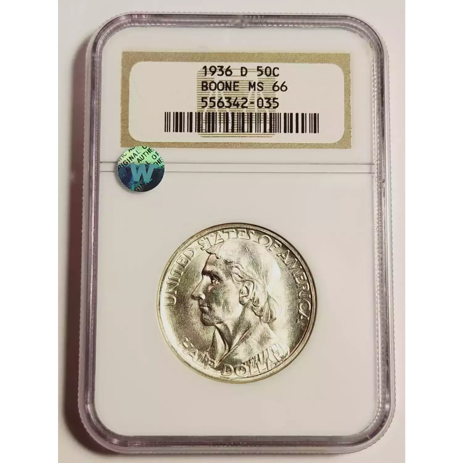 1936-D Classic Commemorative Daniel Boone Bicentennial NGC MS-66 BOONE Sight White