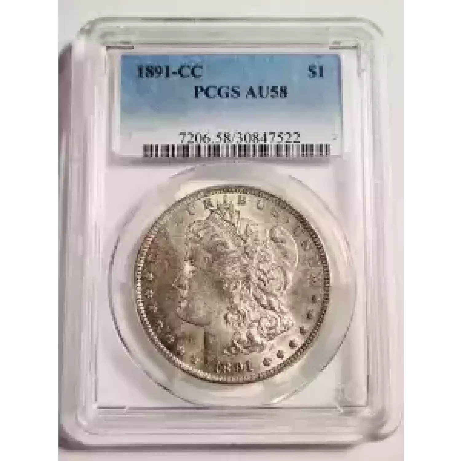 1891-CC Morgan Silver Dollar PCGS AU-58 - SPITTING EAGLE