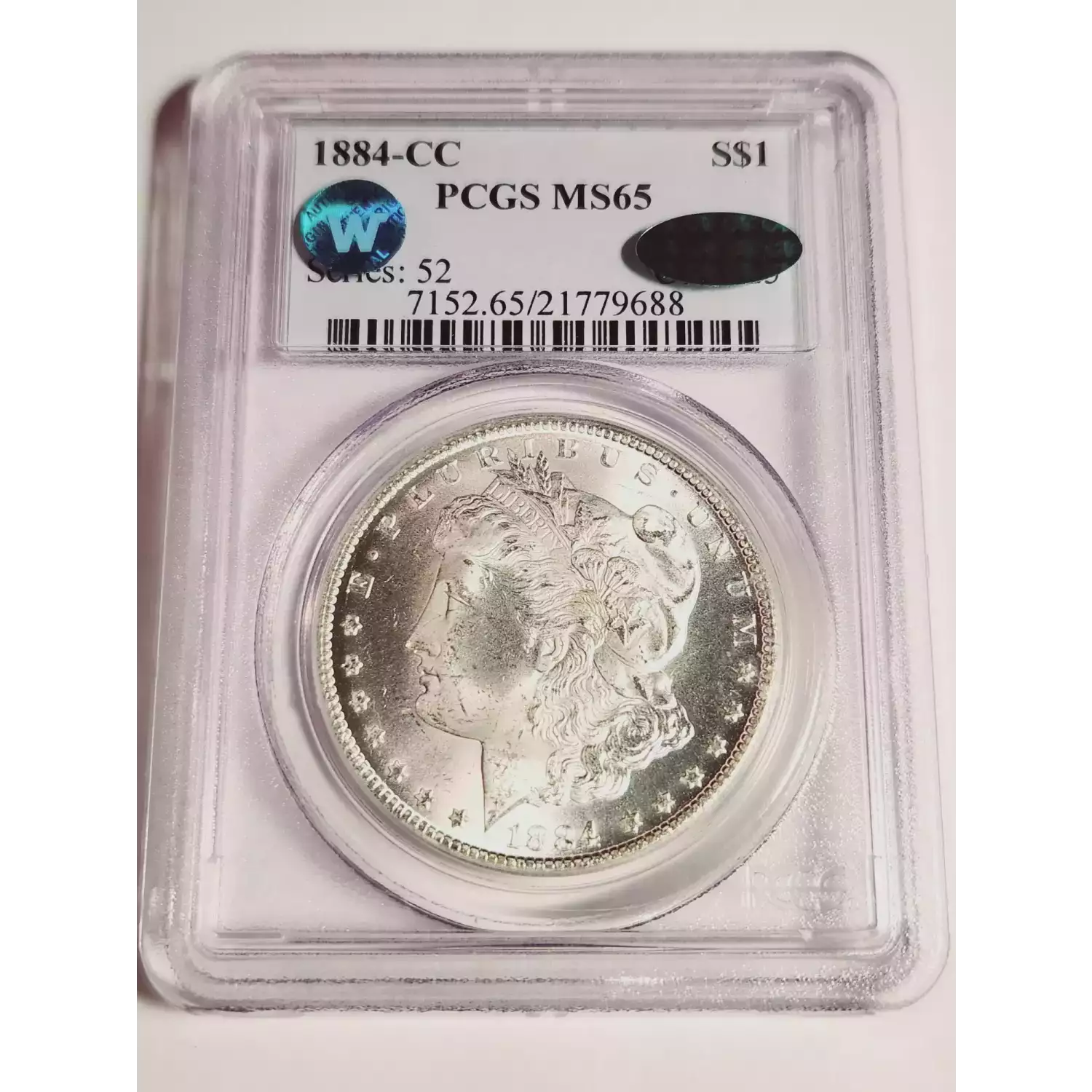 1884-CC Morgan Silver Dollar PCGS MS-65 CAC, Sight White