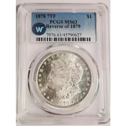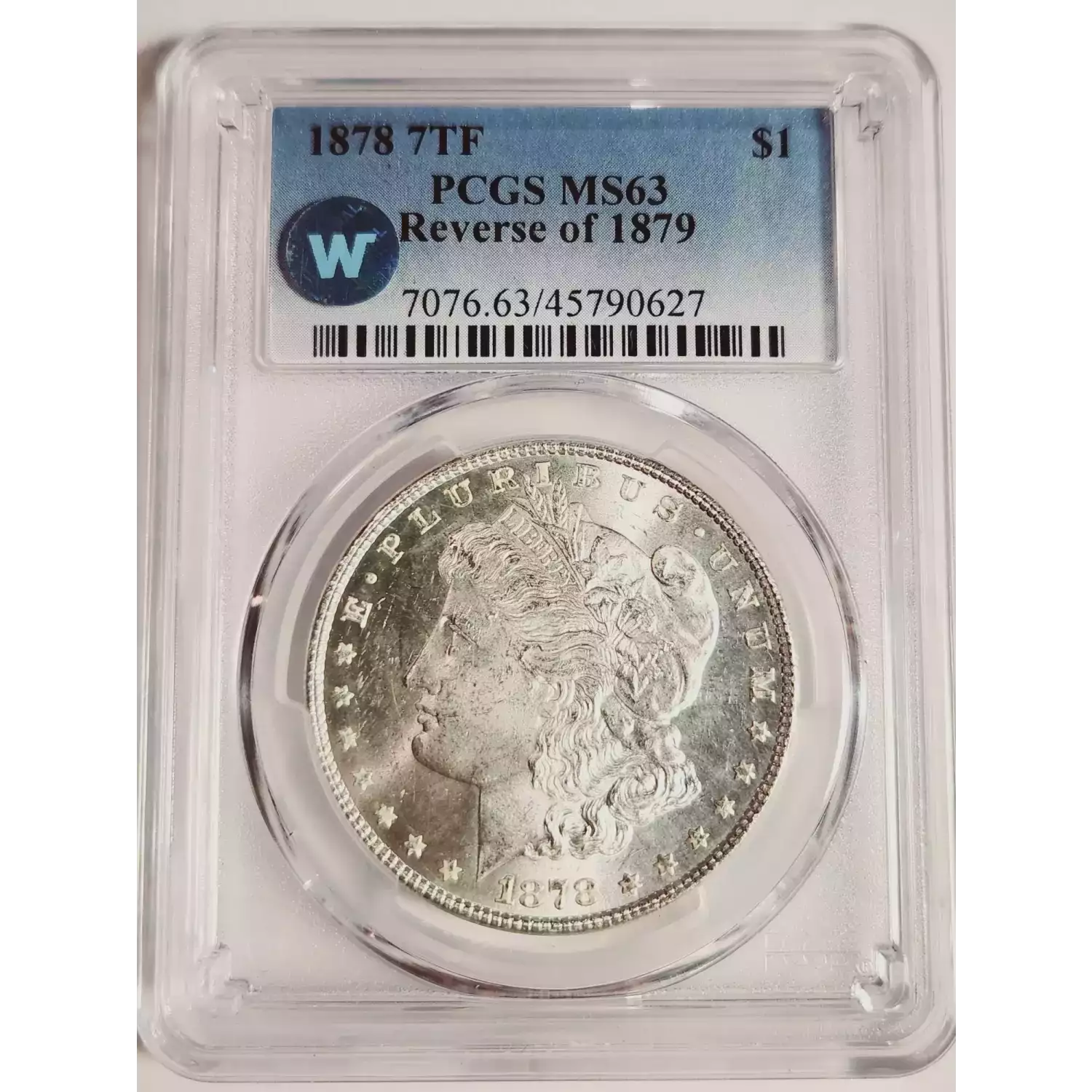 1878 Morgan Silver Dollar PCGS MS-63 7TF, Reverse of 1879 Sight White