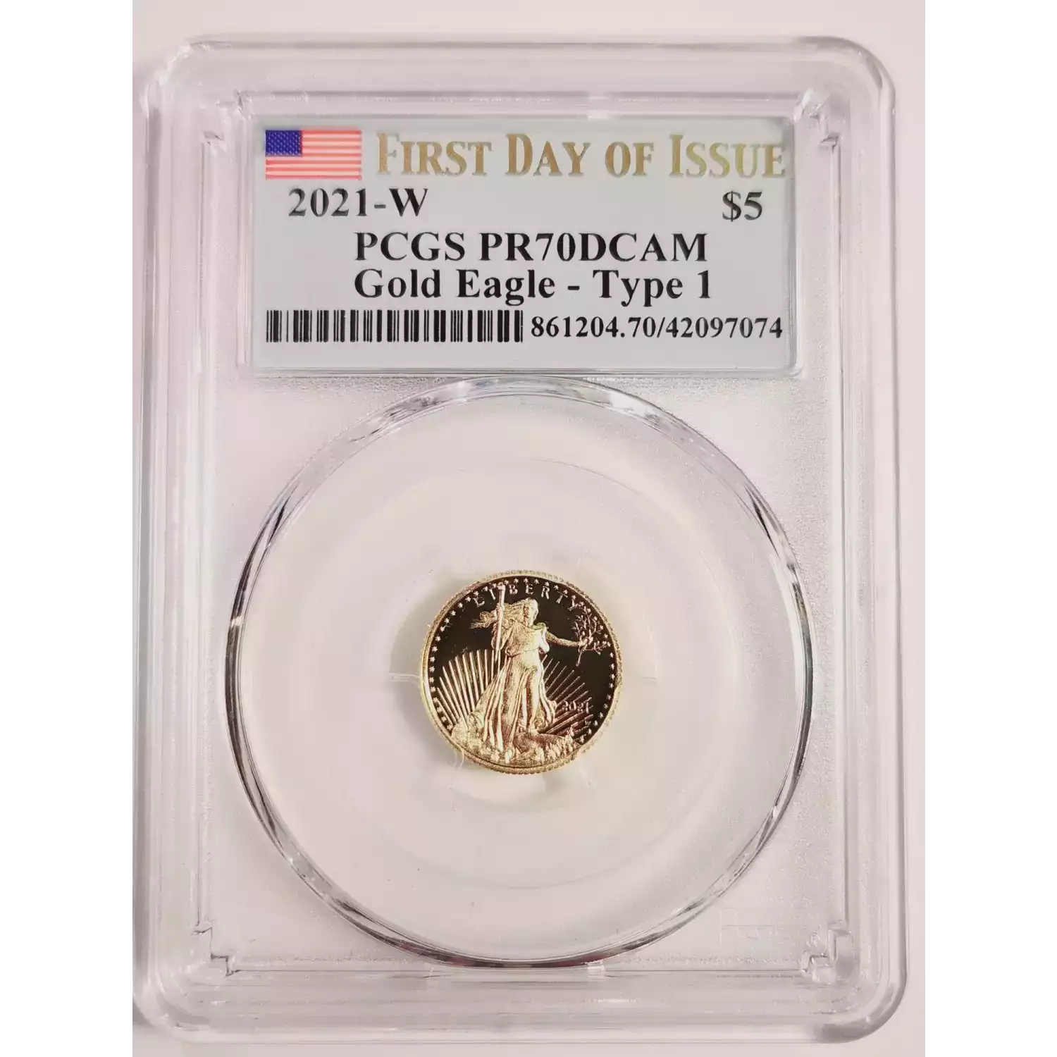 2021-W Bullion $5 Gold Eagle 1/10 oz PCGS PR-70 DCAM - TYPE 1