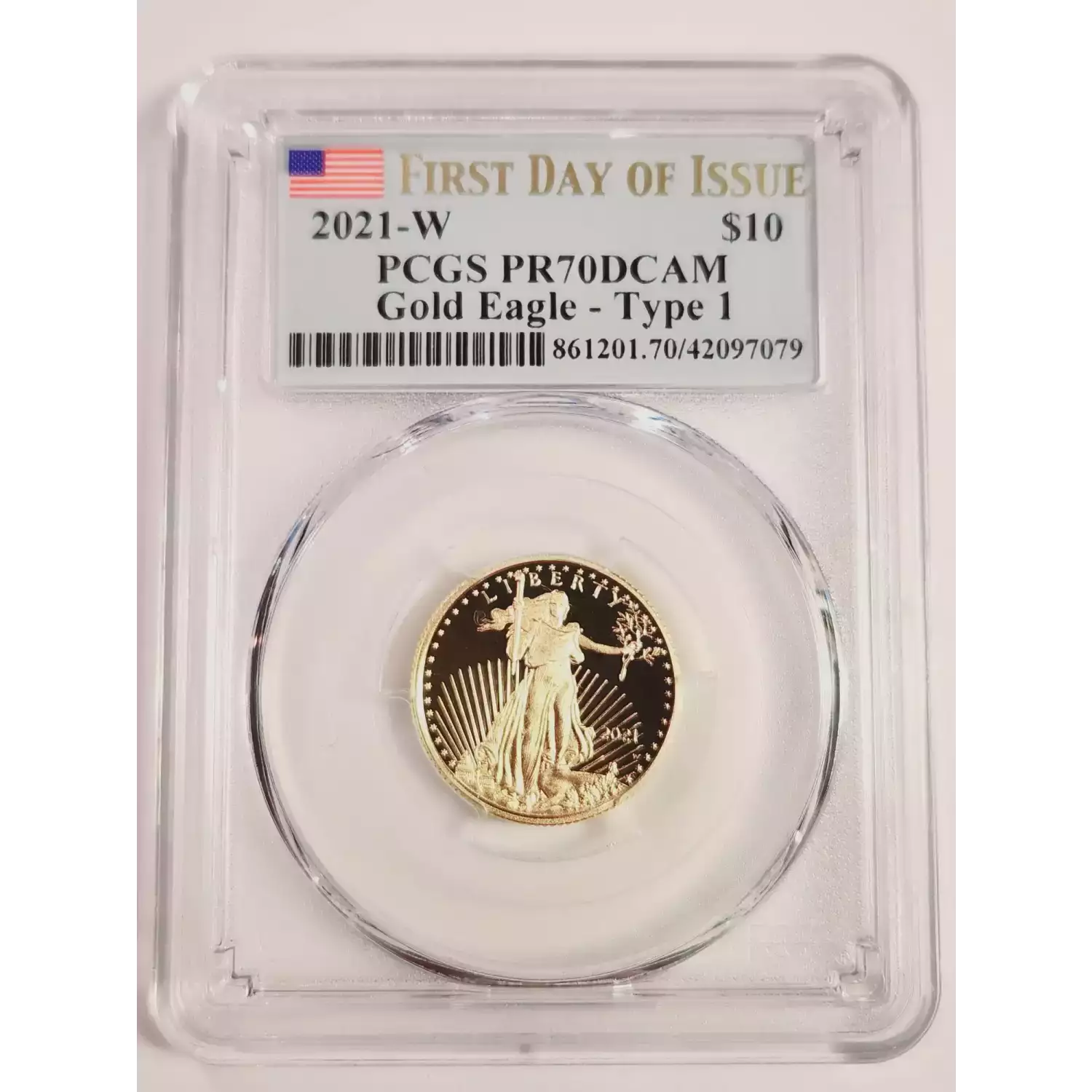 2021-W Bullion $10 Gold Eagle 1/4 oz PCGS PR-70 DCAM - TYPE 1