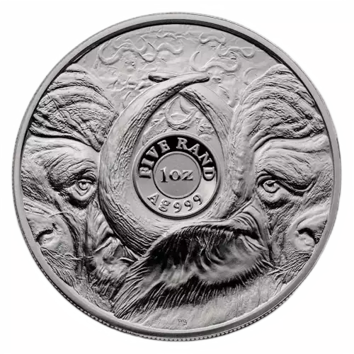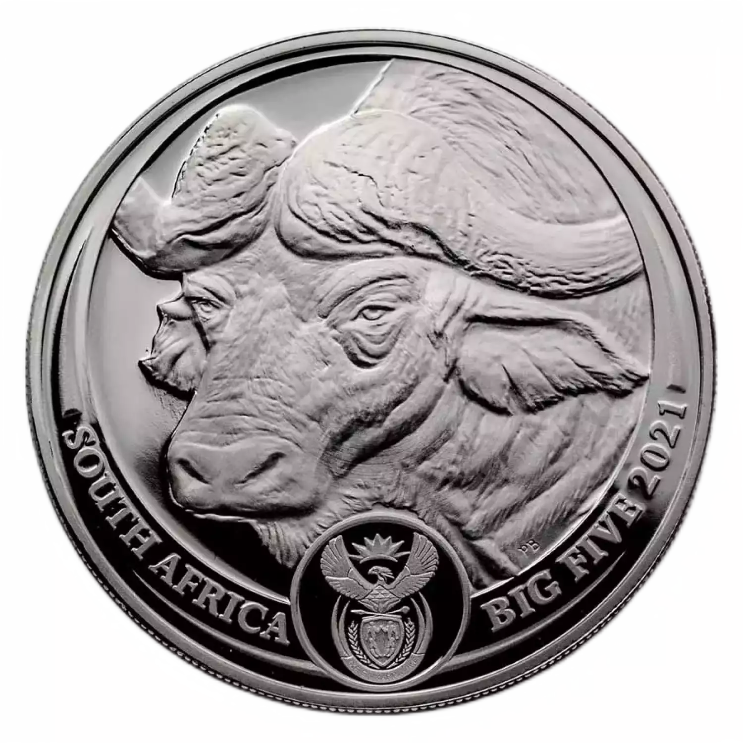 - Obverse: Features a close-up side profile of the buffalo. The words "South Africa" and "Big Five 2021", as well as the coat of arms is included.