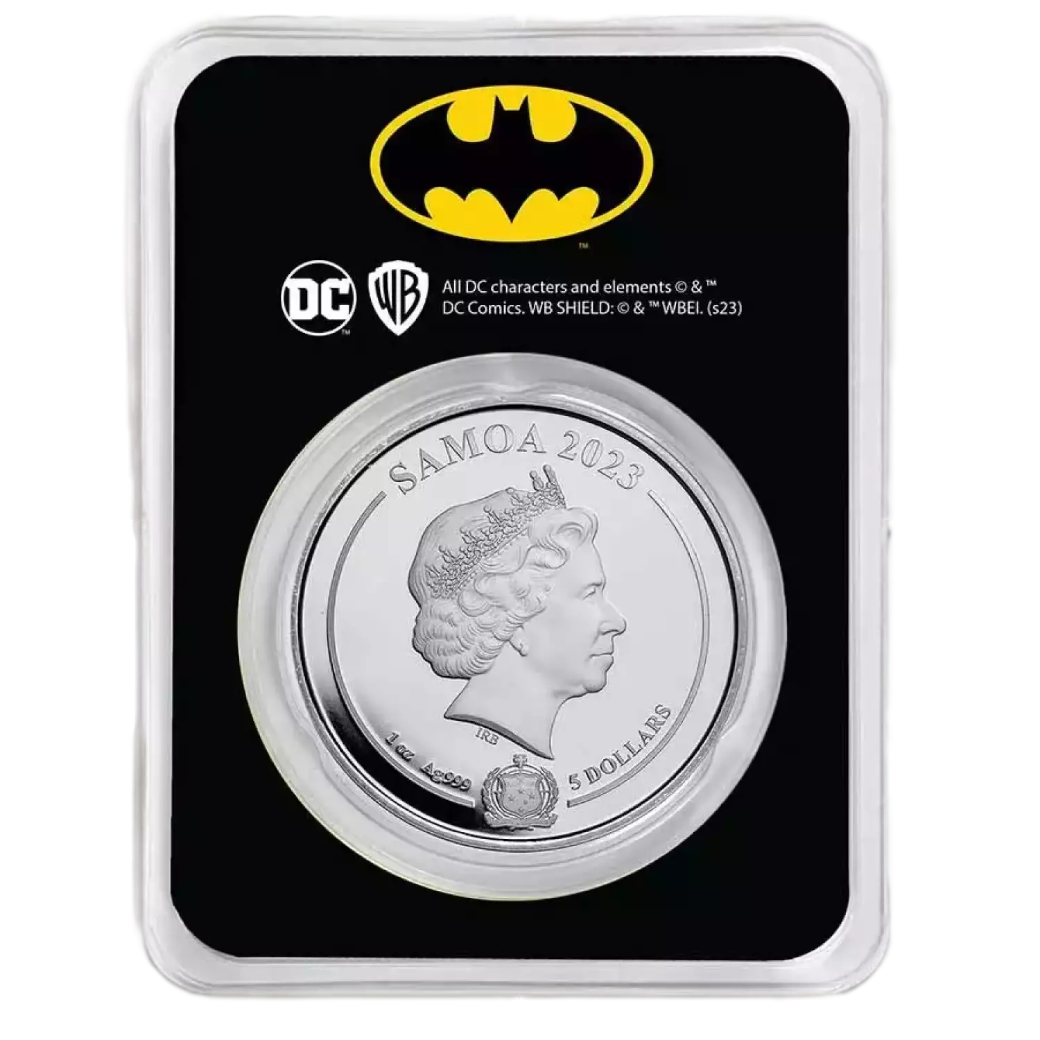 Housed in TEP - RF-welded plastic polymer case (2 1/2" x 3 1/4"), protecting the coin's finish along with Batman imagery style card.