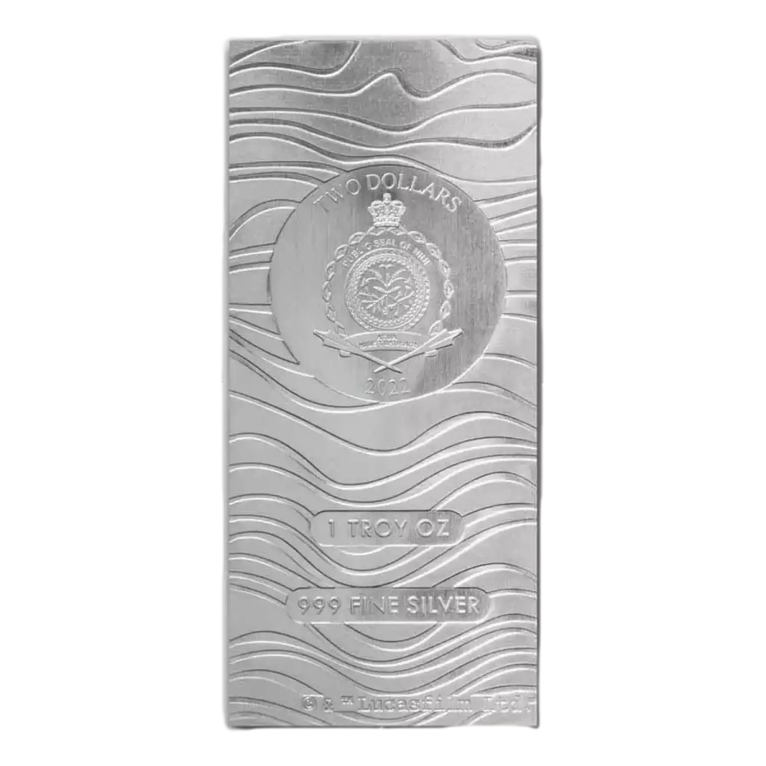 Be a real-life investor in Beskar Bar bullion with the most treasured Precious Metal bars in the entire Galaxy! Whether you are a fan of Star Wars: The Mandalorian, a collector of unique coins or a Silver investor, this is the Silver product for you. Add this 2022 1 oz Silver Star Wars: Mandalorian Beskar Bar coin to your cart today!