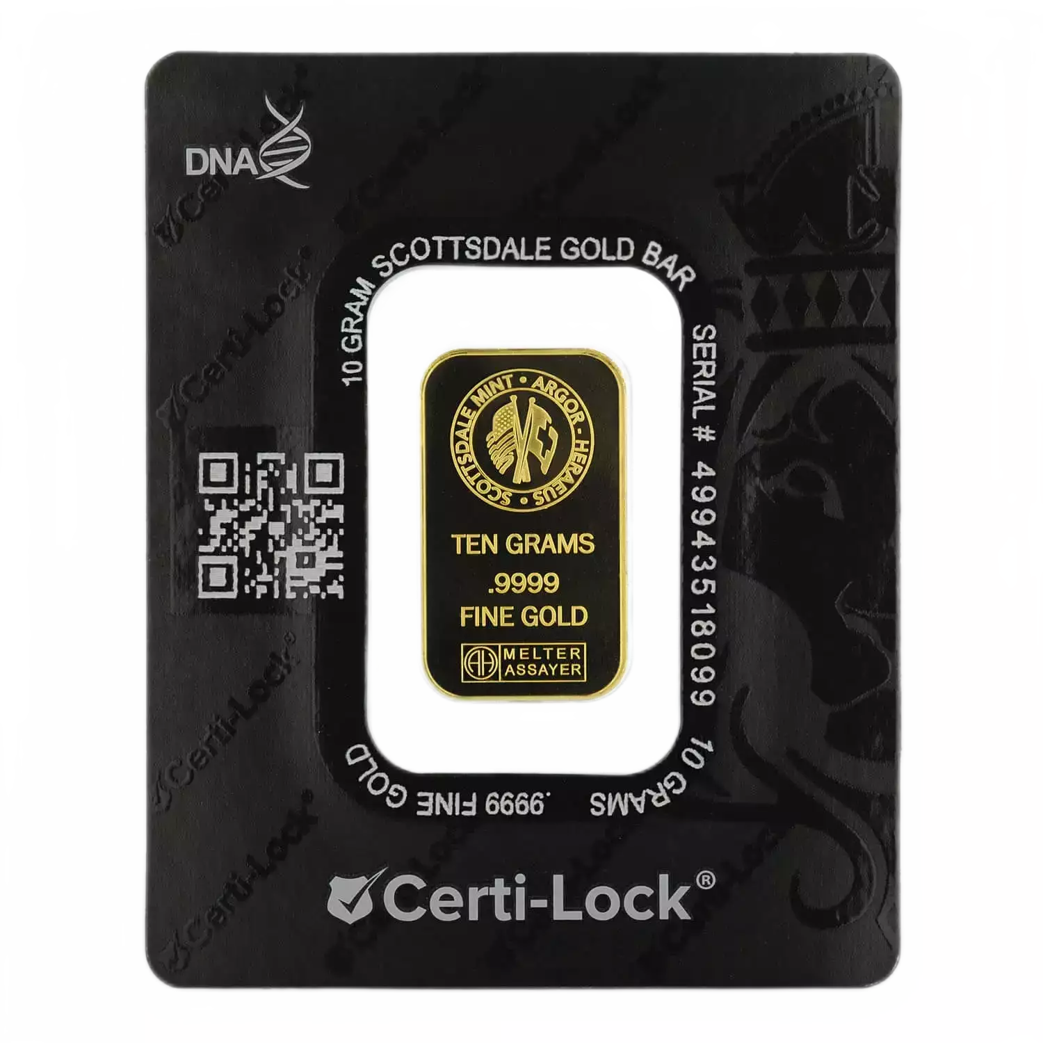 These Gold bars come Co-branded from Scottsdale and Argor-Heraeus, packaged in the new Certi-Lock® assay. Certi-Lock® is a comprehensive, interactive Precious Metals verification system, designed to give consumers confidence in authenticity.