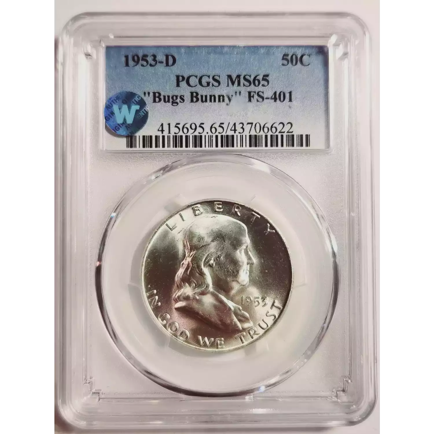1953-D Franklin Half Dollar PCGS MS-65 "Bugs Bunny" FS-401 Sight White
