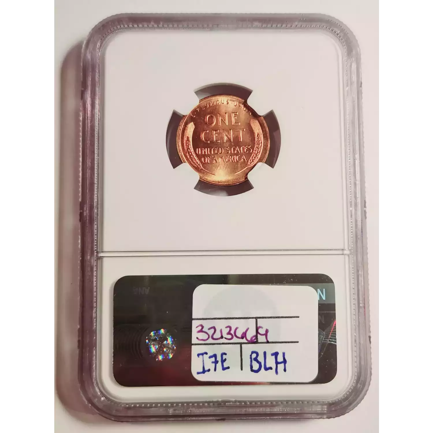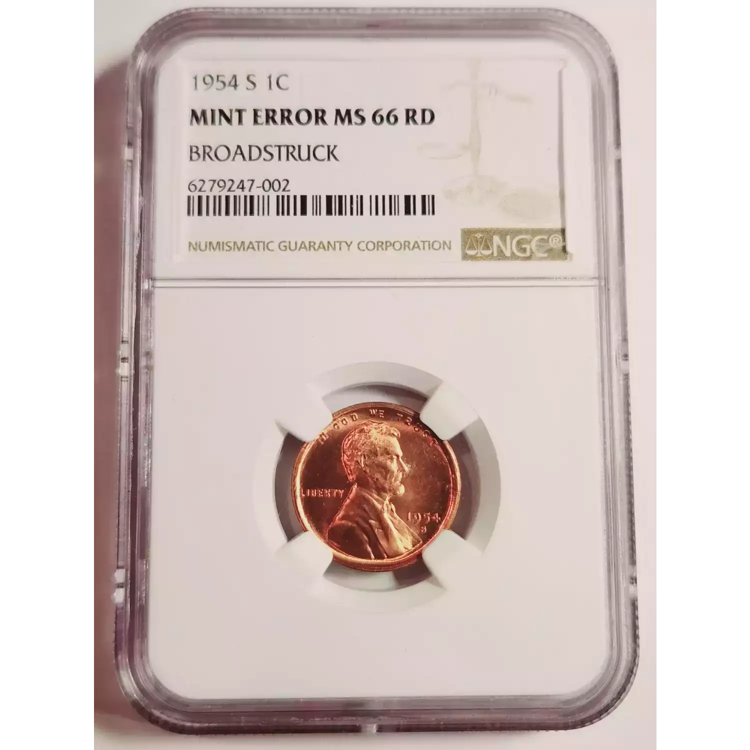 1954-S Small Cents Lincoln, Wheat Ears Reverse NGC MS-66 RD MINT ERROR - BROADSTRUCK