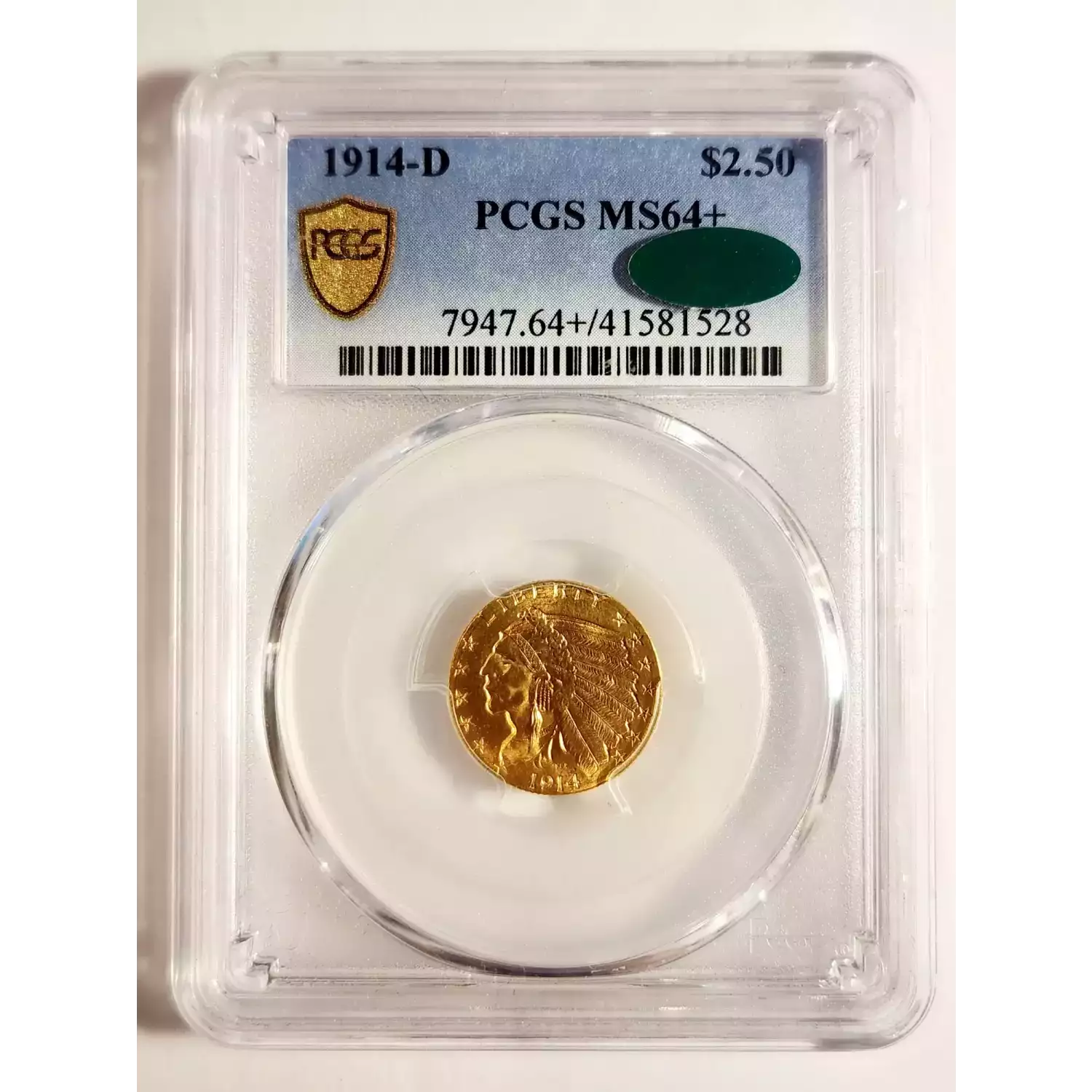 1914-D Gold Quarter Eagles $2 1/2 Indian Head PCGS MS-64+ CAC