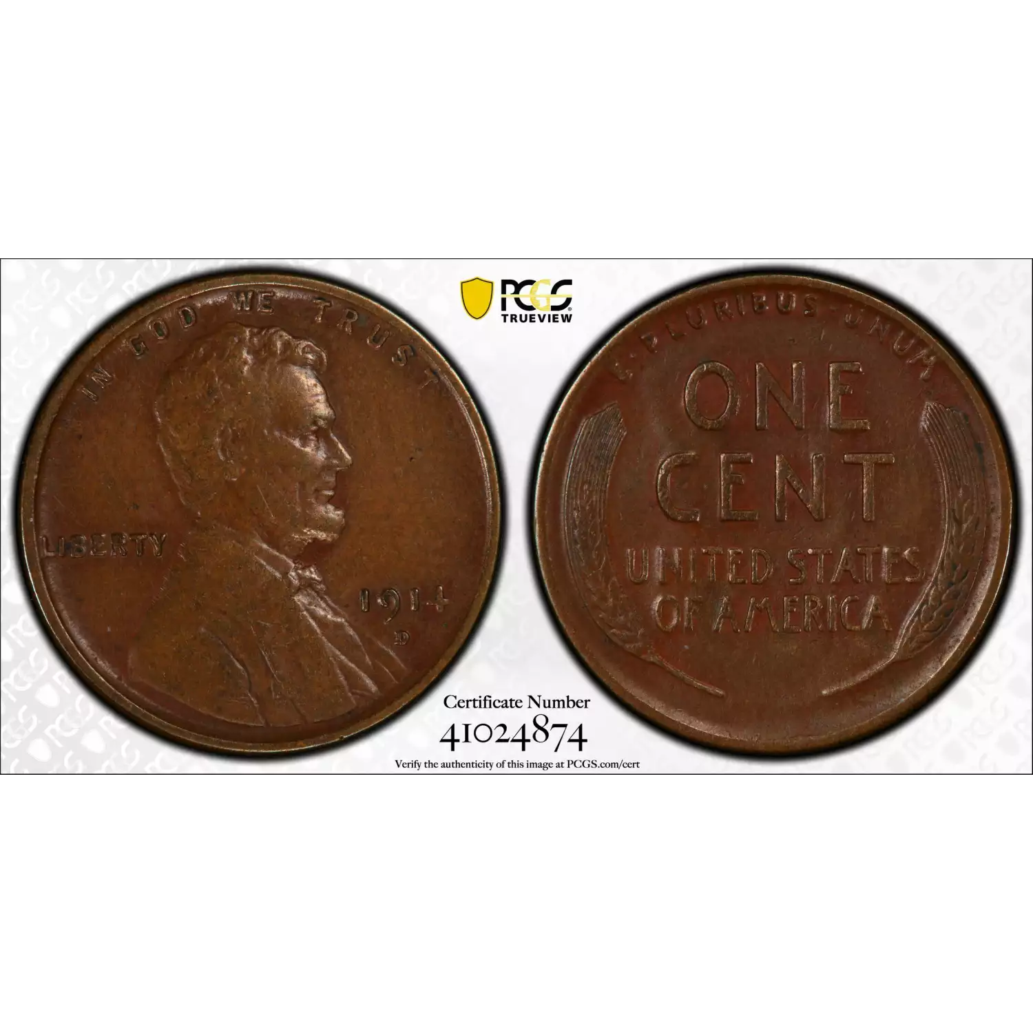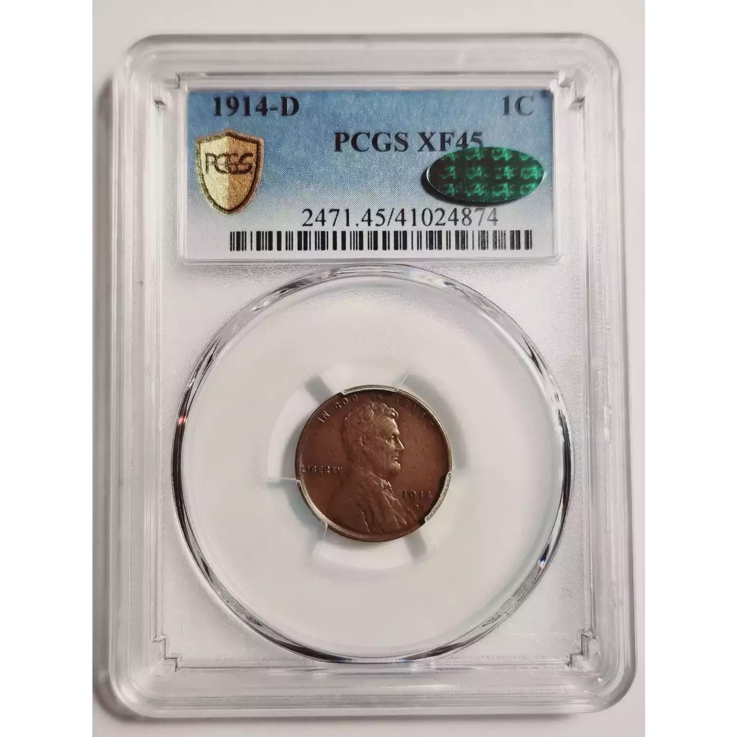 1914-D Small Cents Lincoln, Wheat Ears Reverse PCGS XF-45 BN CAC