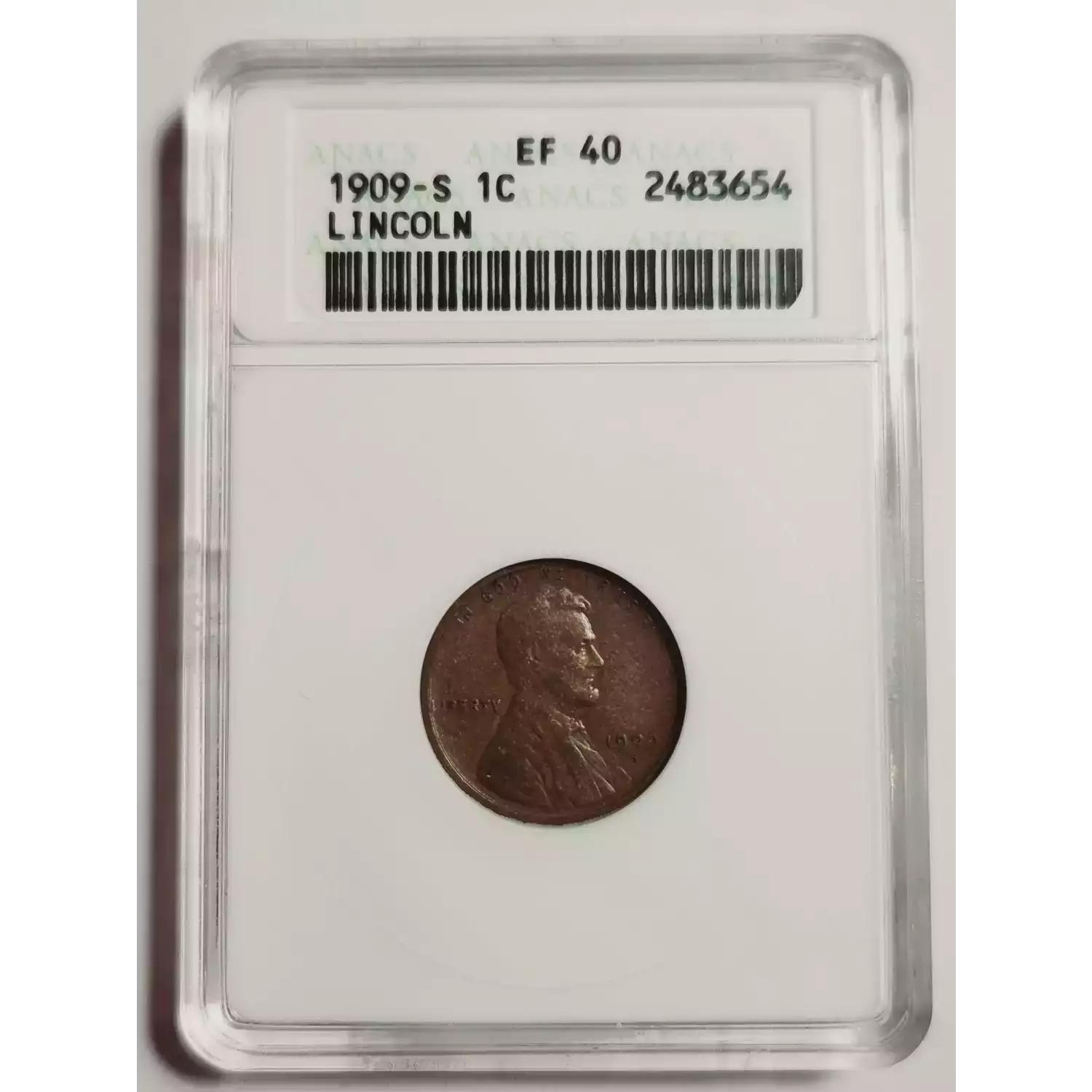 1909-S Small Cents Lincoln, Wheat Ears Reverse ANACS XF-40