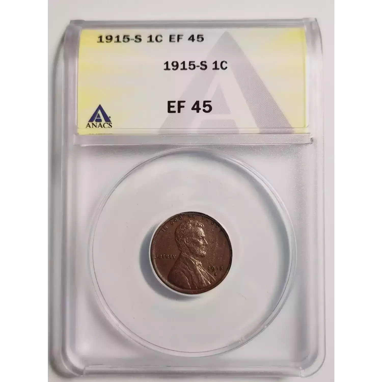 1915-S Small Cents Lincoln, Wheat Ears Reverse ANACS XF-45
