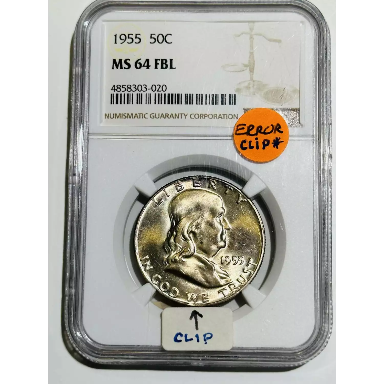 1955 Franklin Half Dollar NGC MS-64 FBL CLIP