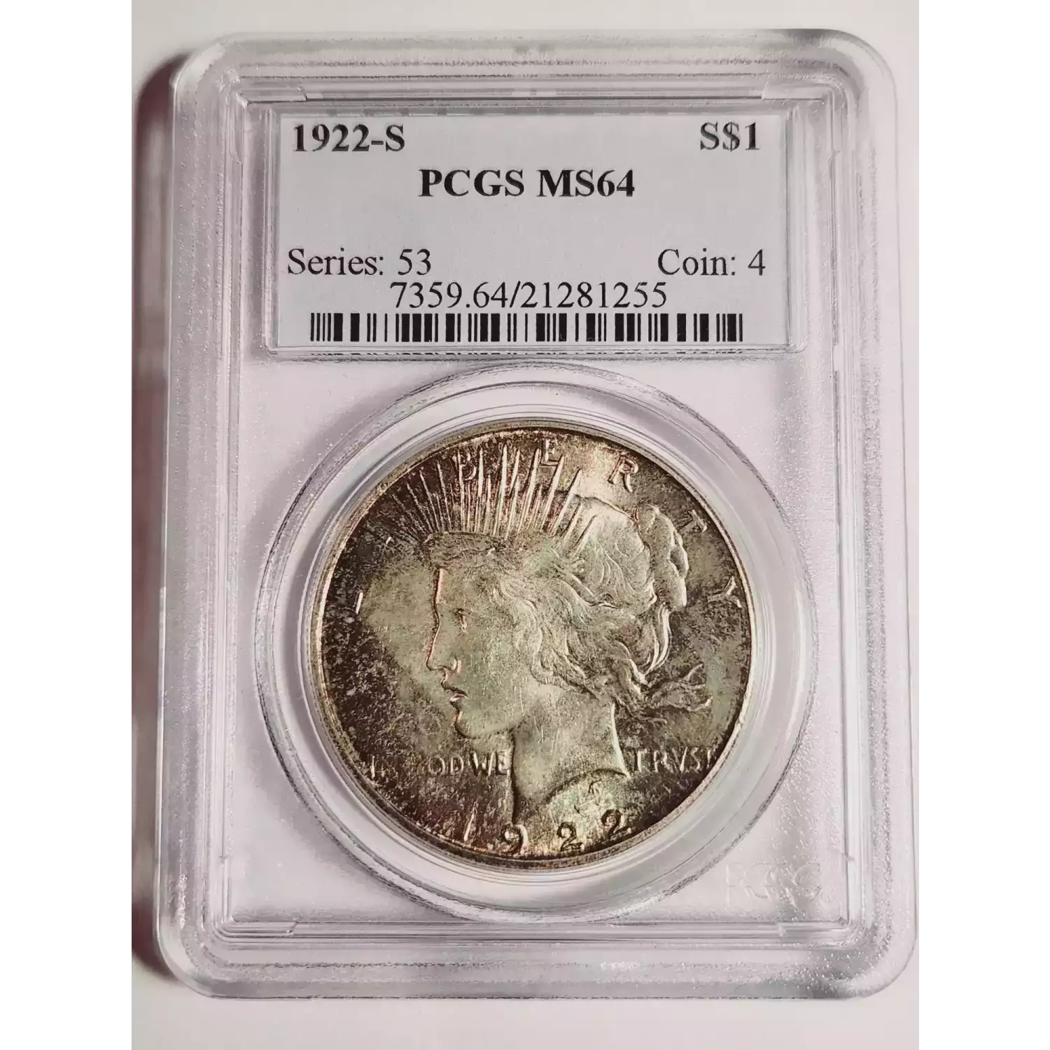 1922-S Peace Dollar PCGS MS-64 - OG TONING