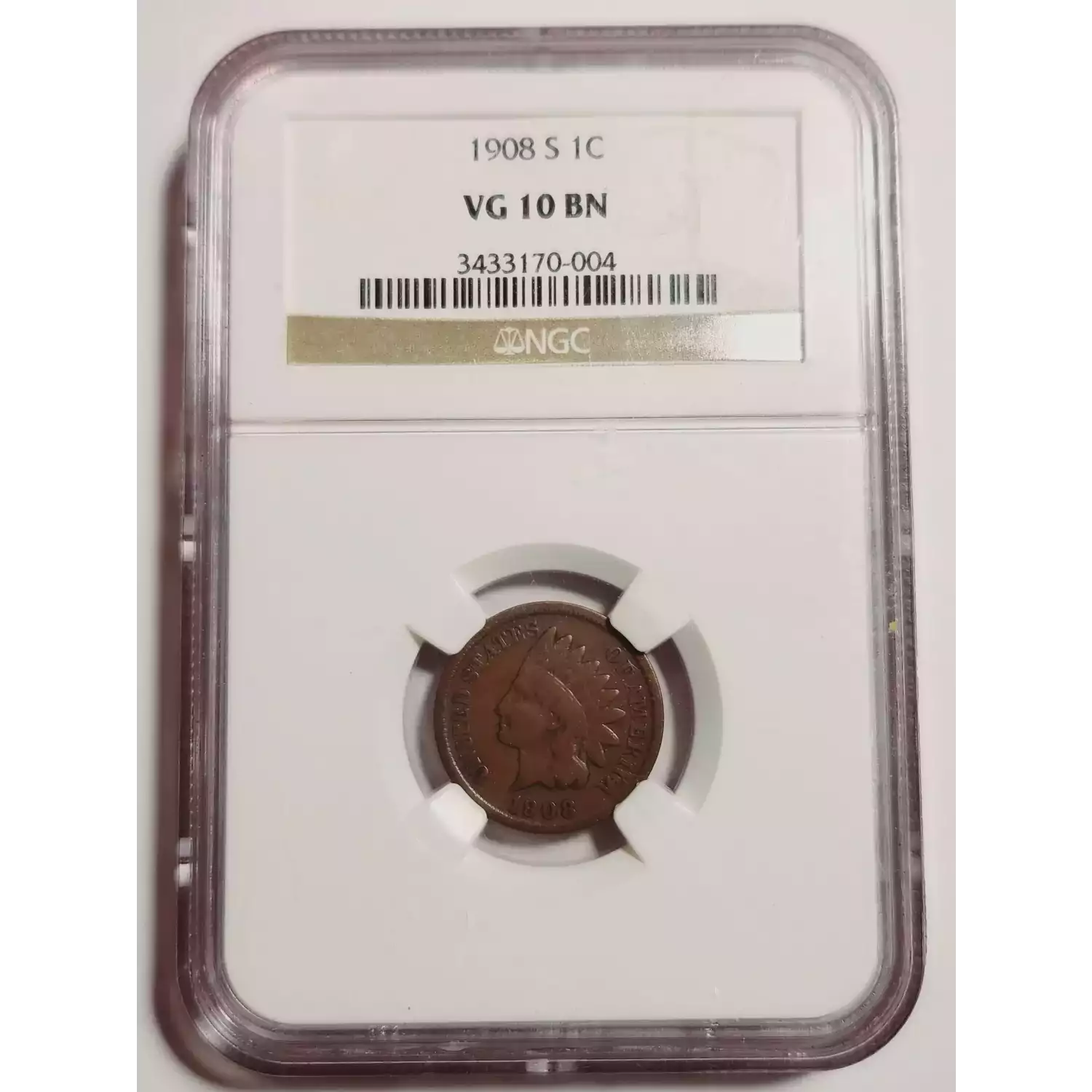 1908-S Small Cents Indian Head NGC VG-10 BN