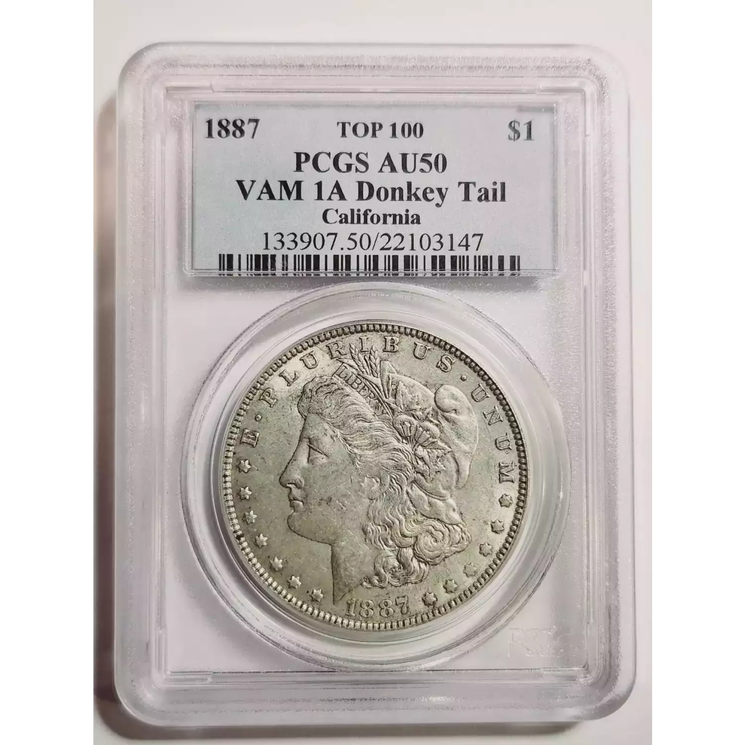 1887 Morgan Silver Dollar PCGS AU-50 VAM 1A - CALIFORNIA - DONKEY TAIL - TOP 100