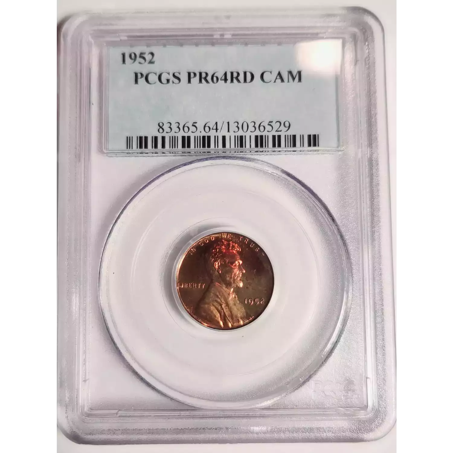 1952 Small Cents Lincoln, Wheat Ears Reverse PCGS PR-64 RD CAM