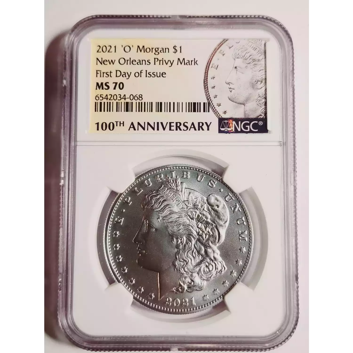 2021-O Morgan Silver Dollar NGC MS-70 1ST DAY OF ISSUE - 100TH ANNIV - W/ OGP