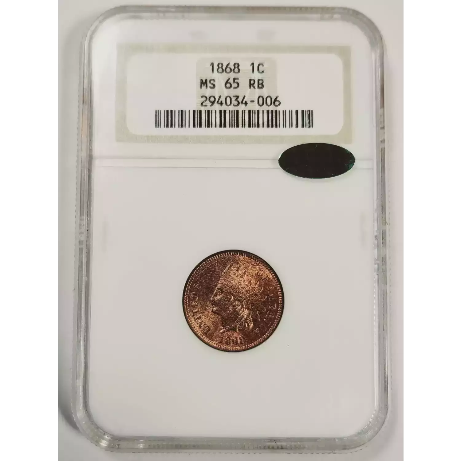 1868 Small Cents Indian Head NGC MS-65 RB CAC