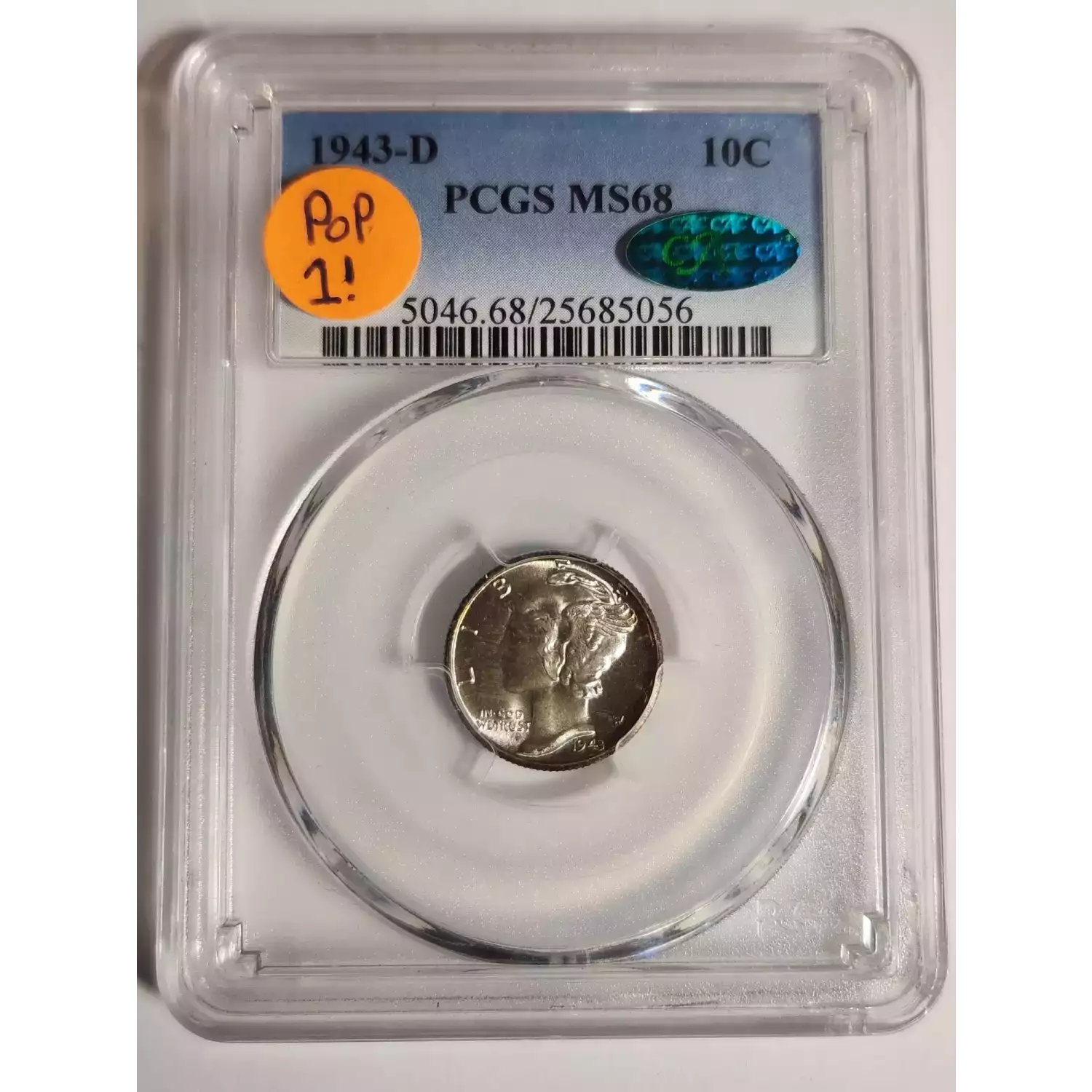 1943-D Mercury Dime PCGS MS-68 - POP 1! - PRETTY CAC
