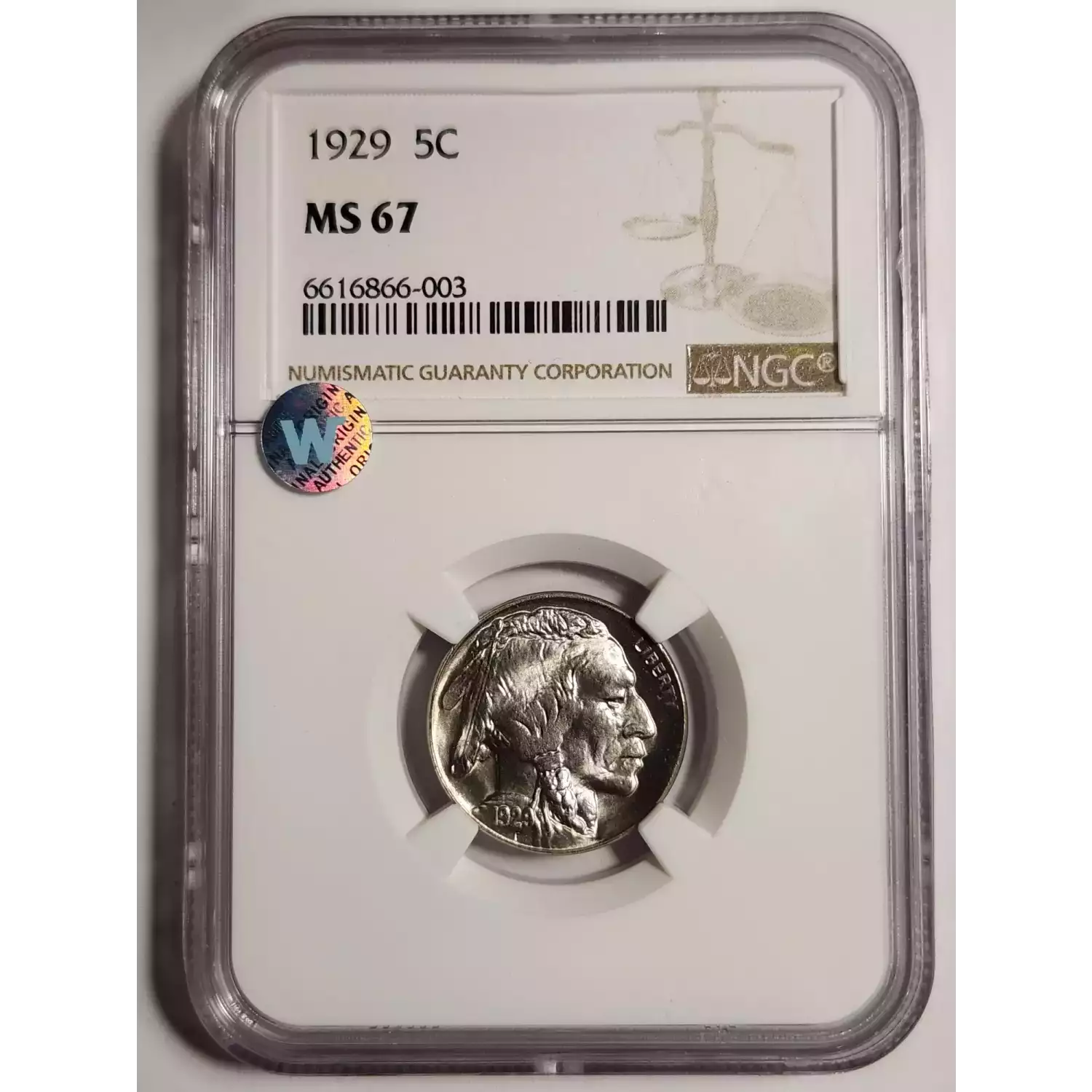 1929 Buffalo Nickel NGC MS-67 Sight White