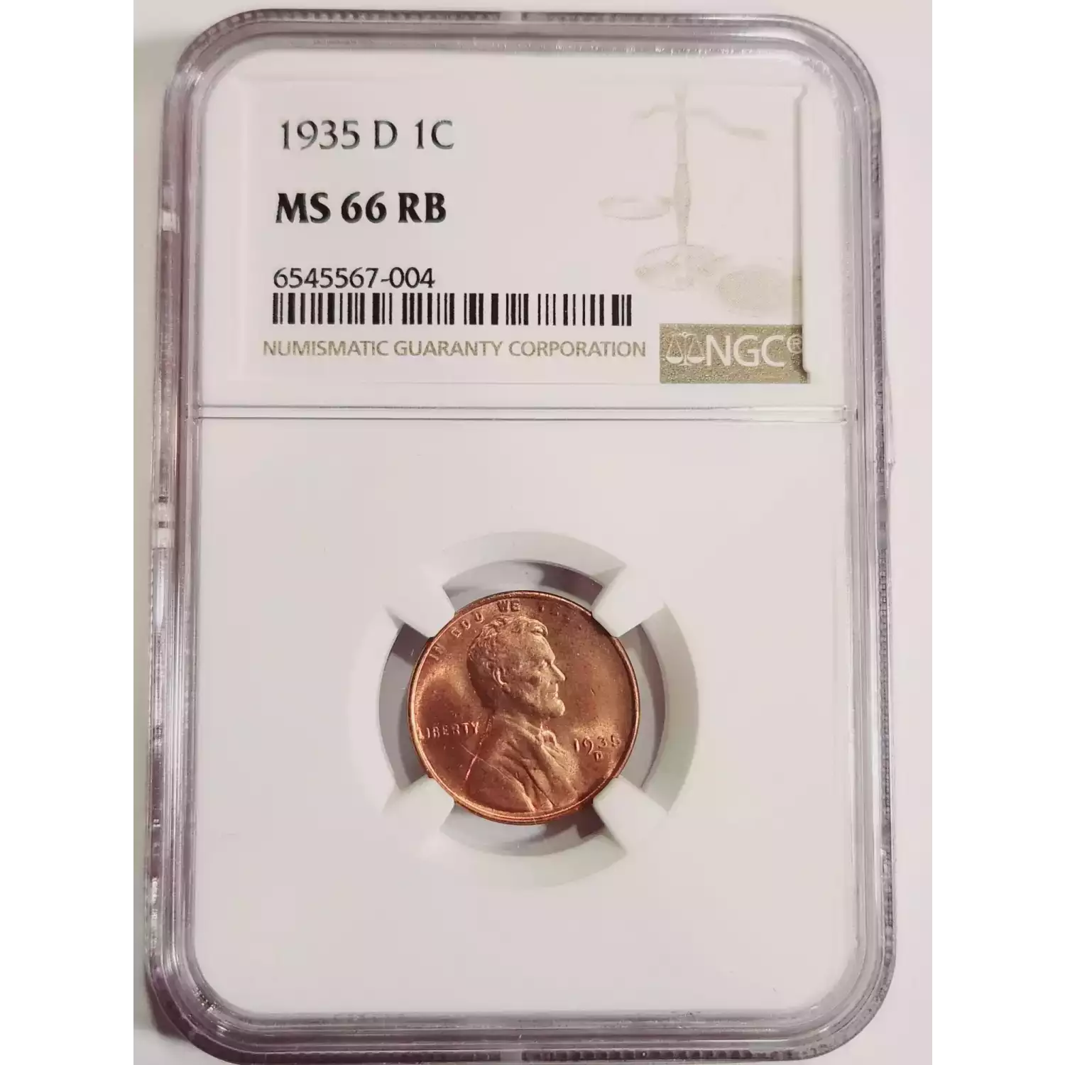 1935-D Small Cents Lincoln, Wheat Ears Reverse NGC MS-66 RB