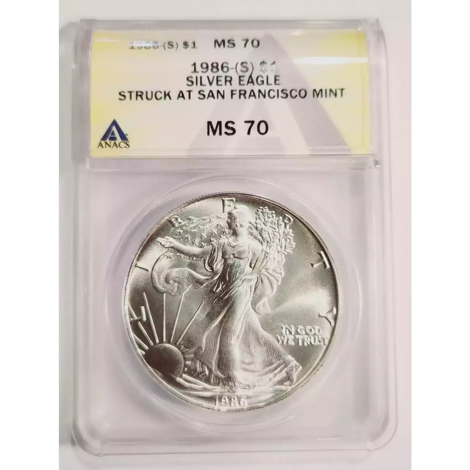 1986-S Silver Eagles ANACS MS-70 - SILVER EAGLE - STRUCK AT SAN FRAN MINT