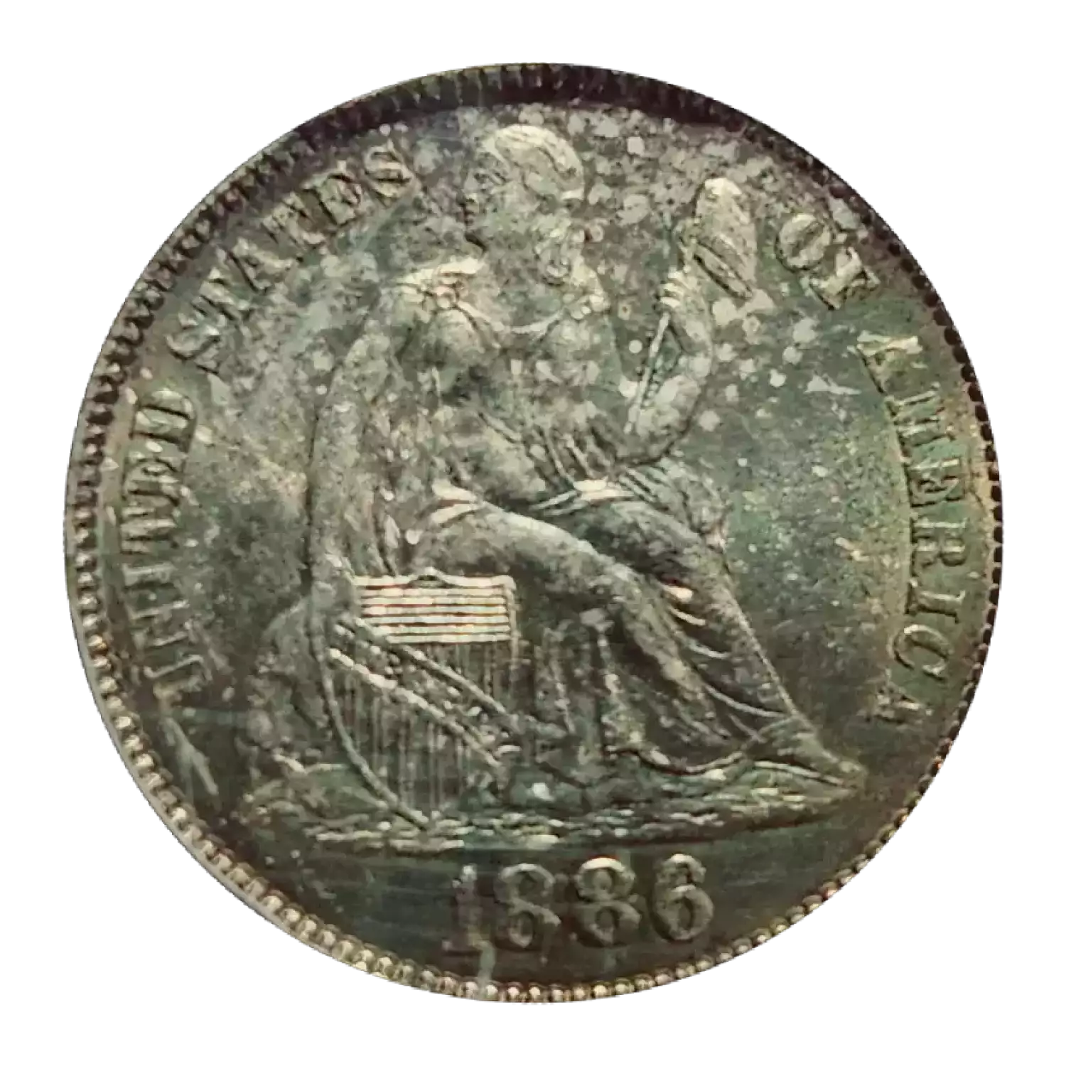 1886 Liberty Seated Dime PCGS MS-64 - COLORS