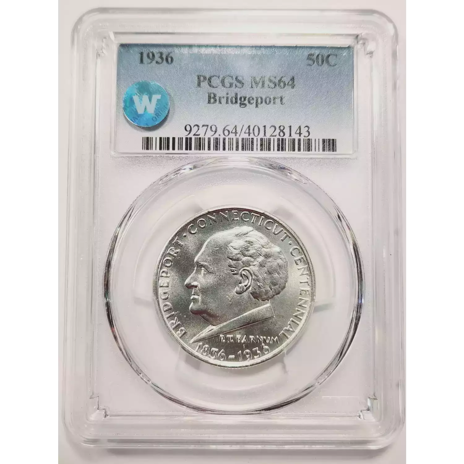 1936 Classic Commemorative Bridgeport, Connecticut, Centennial PCGS MS-64 Bridgeport - WOW! Sight White