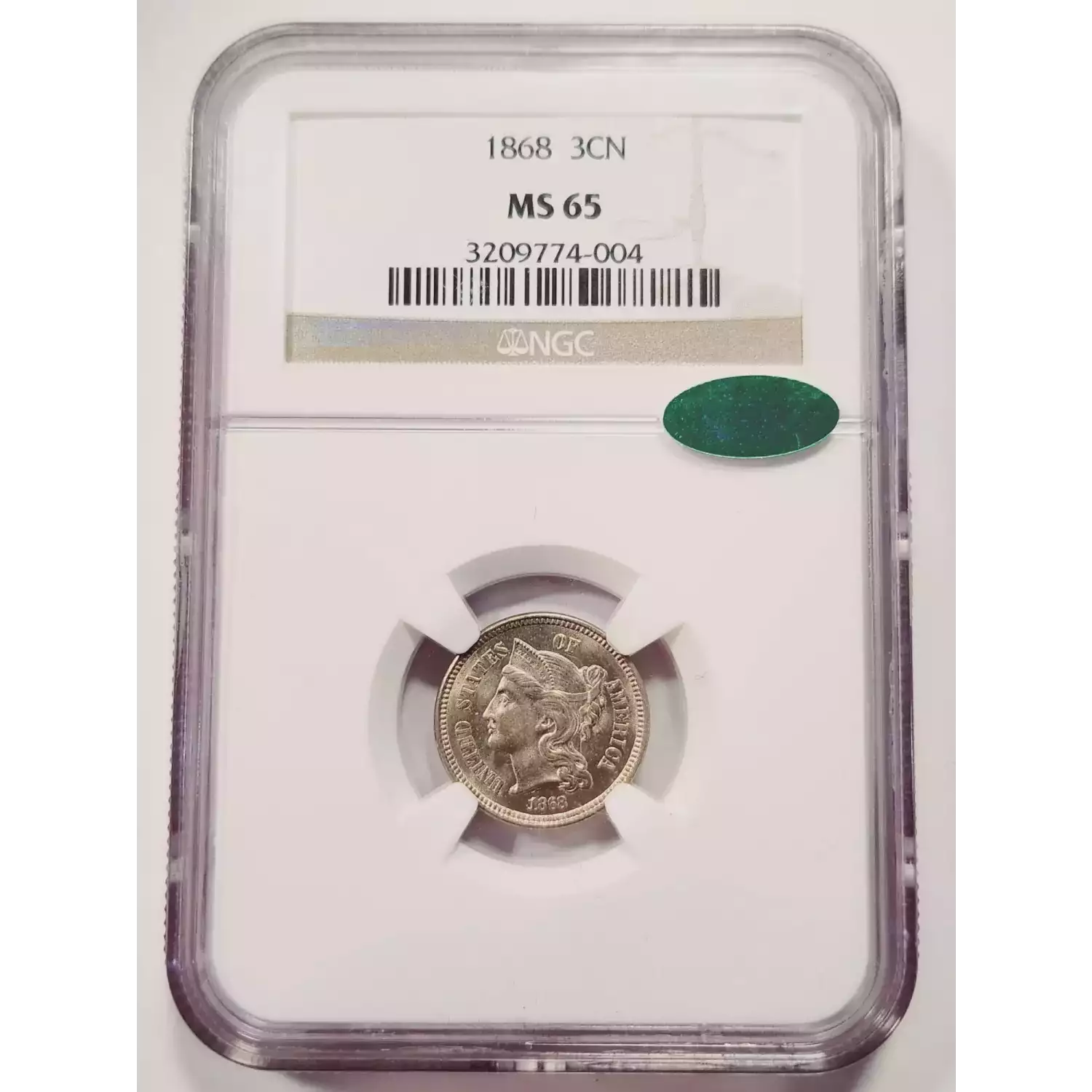 1868 Three Cent Pieces (Nickel) NGC MS-65 CAC
