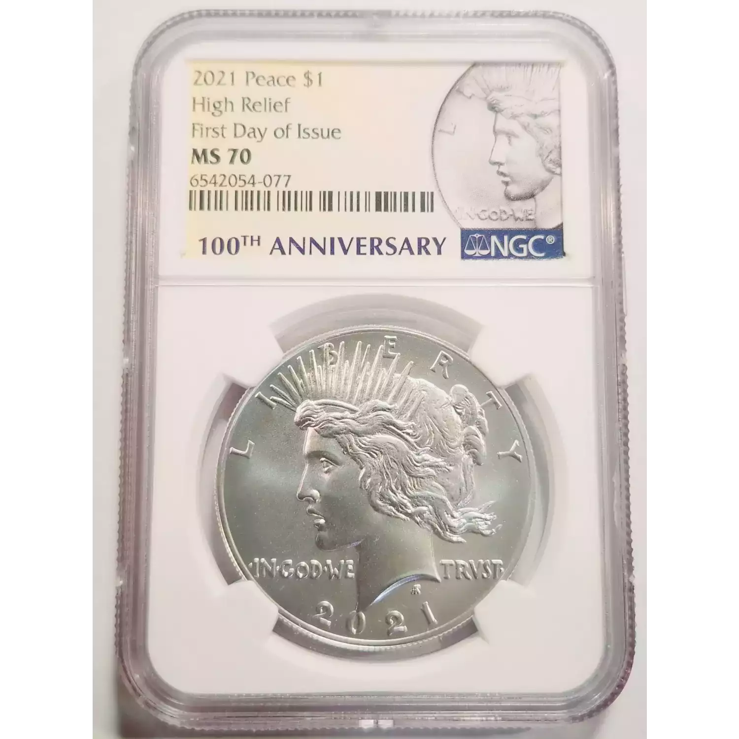 2021-p Peace Dollar NGC MS-70 - HIGH RELIEF - 1ST DAY OF ISSUE - 100TH ANNIV. - WITH OGP