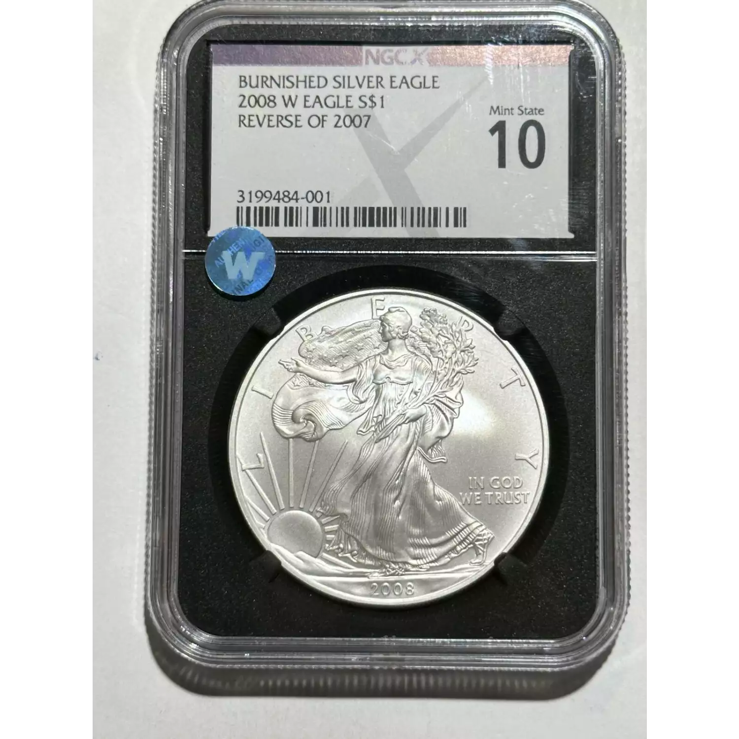 2008 Silver Eagles NGCX 10 W BURNISHED SILVER EAGLE REVERSE OF 2007 Sight White