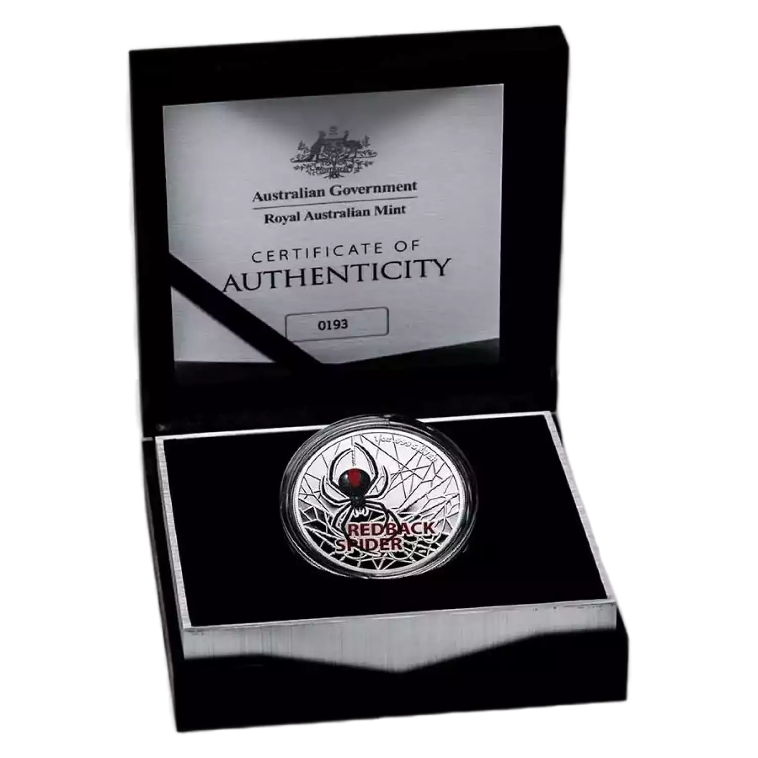 2021 $5 1 oz Silver REDBACK SPIDER Colored Proof Coin by the Australian Royal Mint.