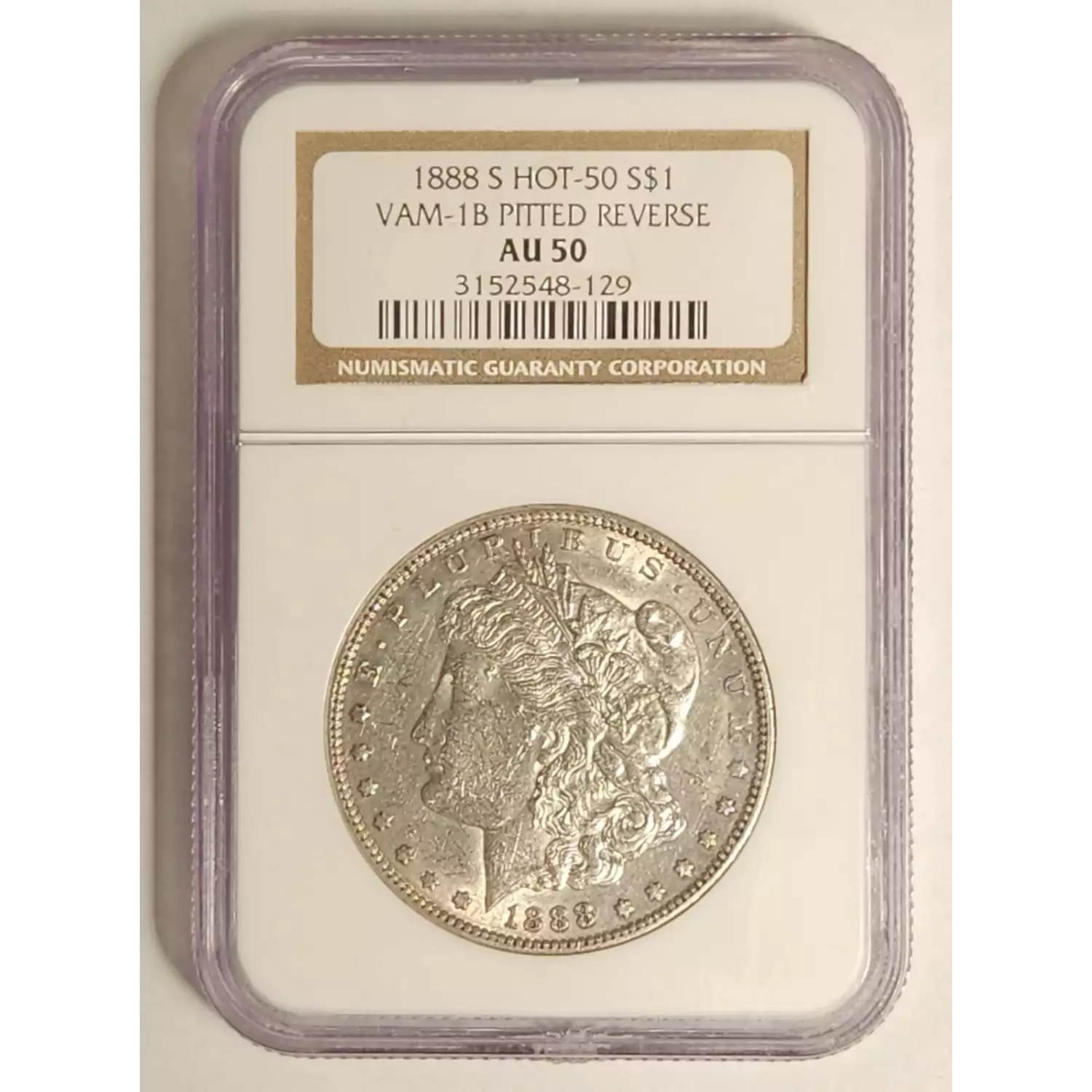 1888-S Morgan Silver Dollar NGC AU-50 VAM-6A PITTED REVERSE - HOT 50 - SLIGHT REV ROTATION