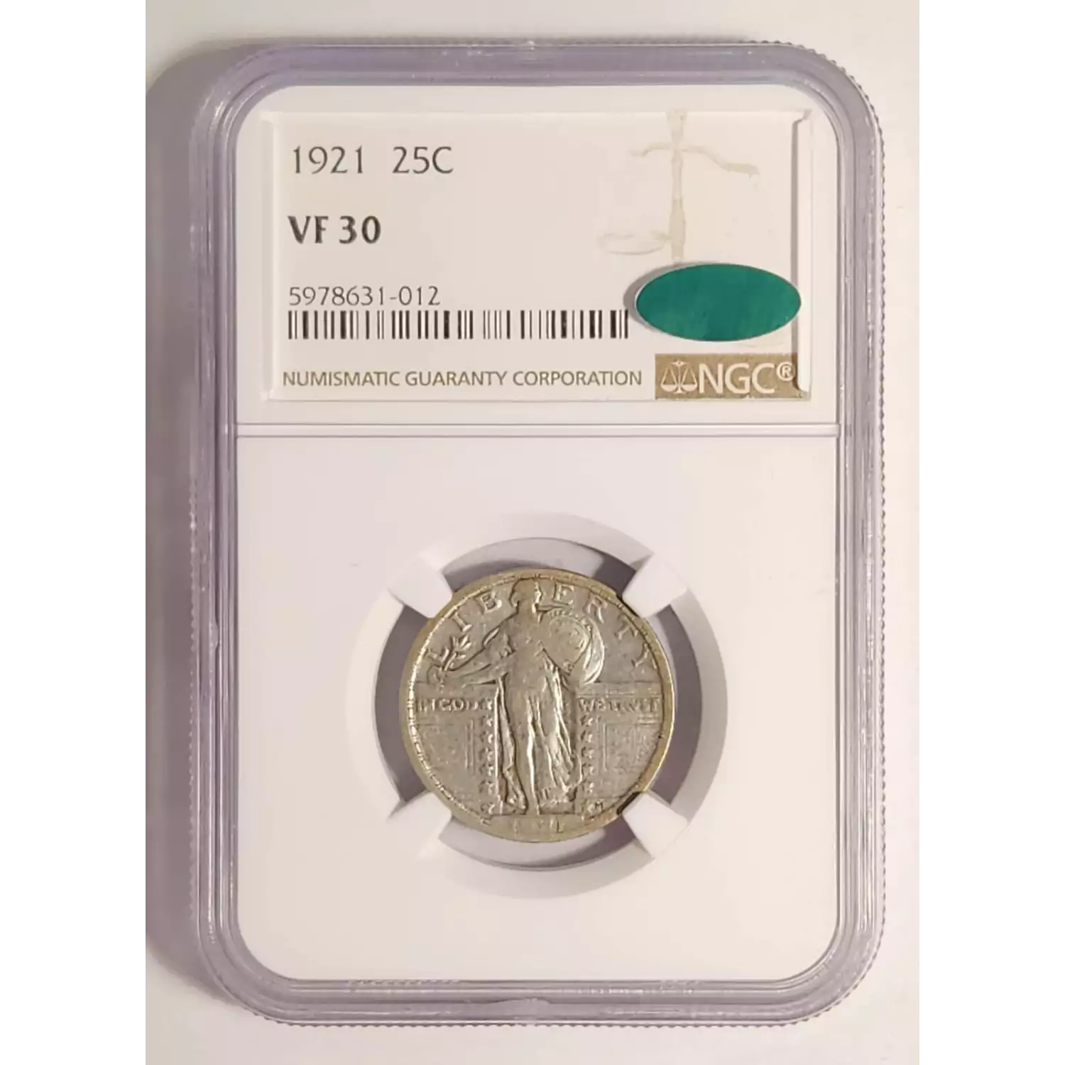 1921 Standing Liberty Quarter NGC VF-30 CAC