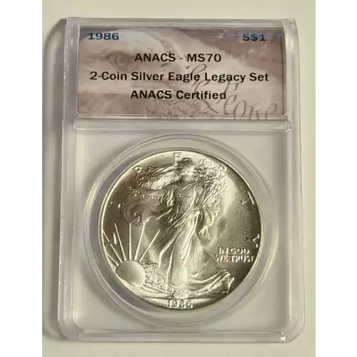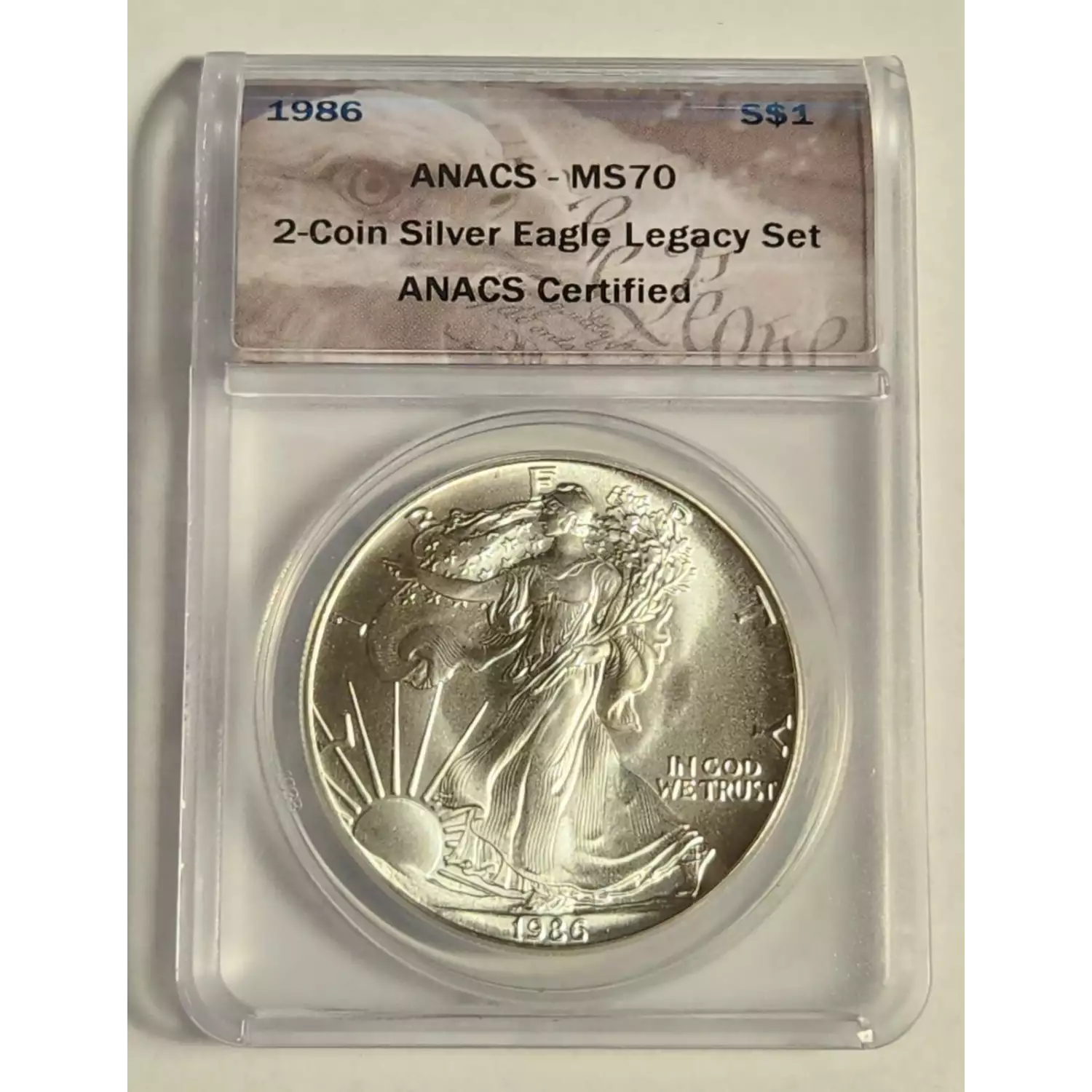 1986 Silver Eagles ANACS MS-70 - 2 COIN SILVER EAGLE LEGACY SET (1 COIN)