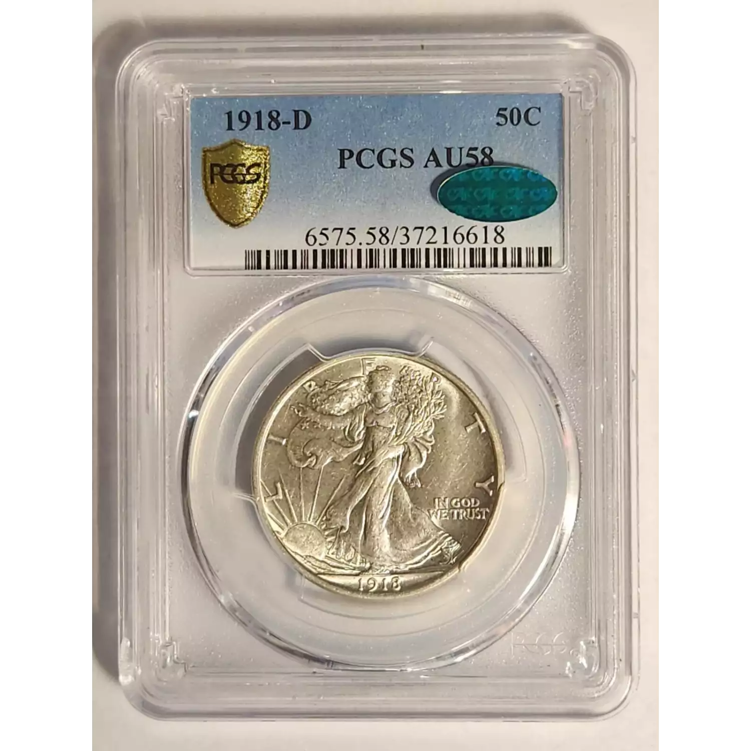 1918-D Walking Liberty Half Dollar PCGS AU-58 CAC