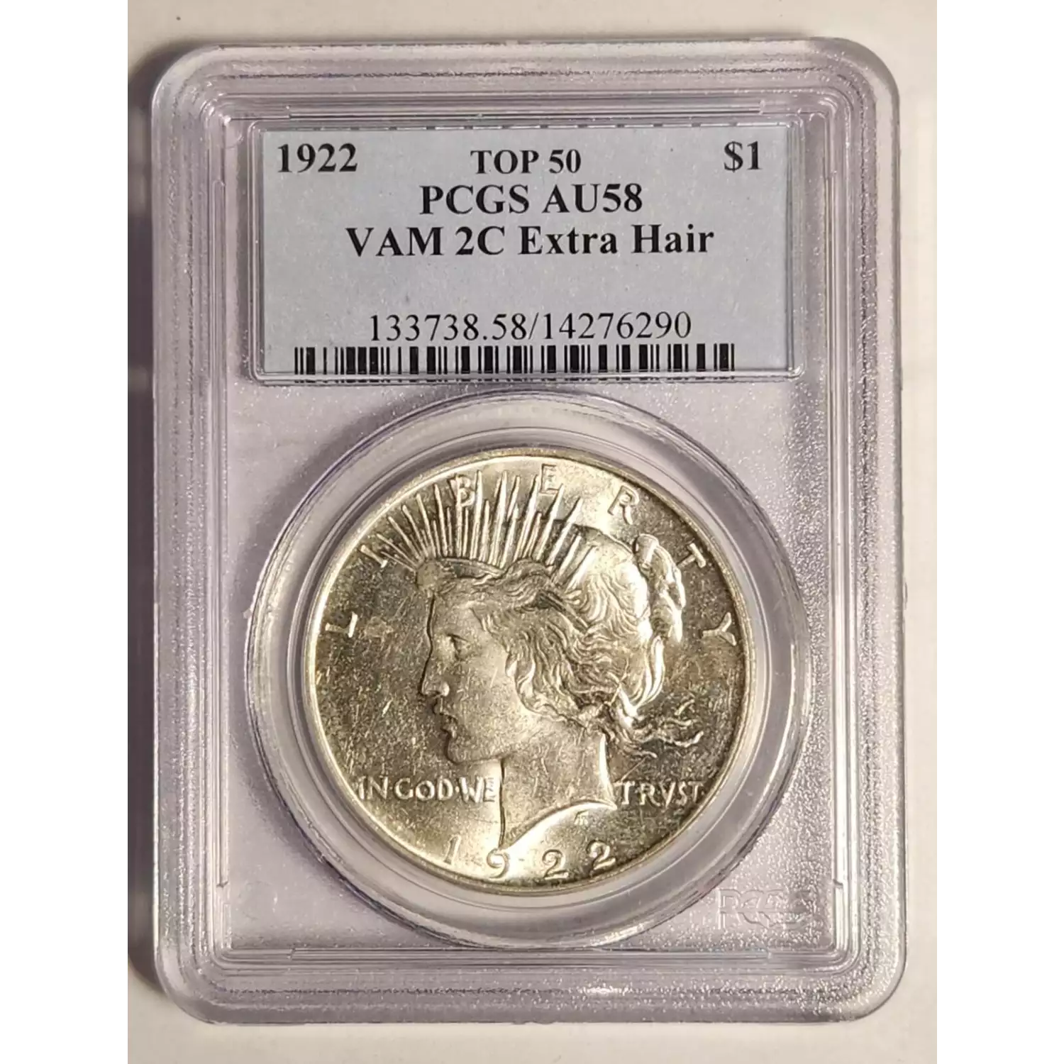 1922 Peace Dollar PCGS AU-58 VAM 2C - EXTRA HAIR - DOUBLED 2 AND FACE - TOP 50