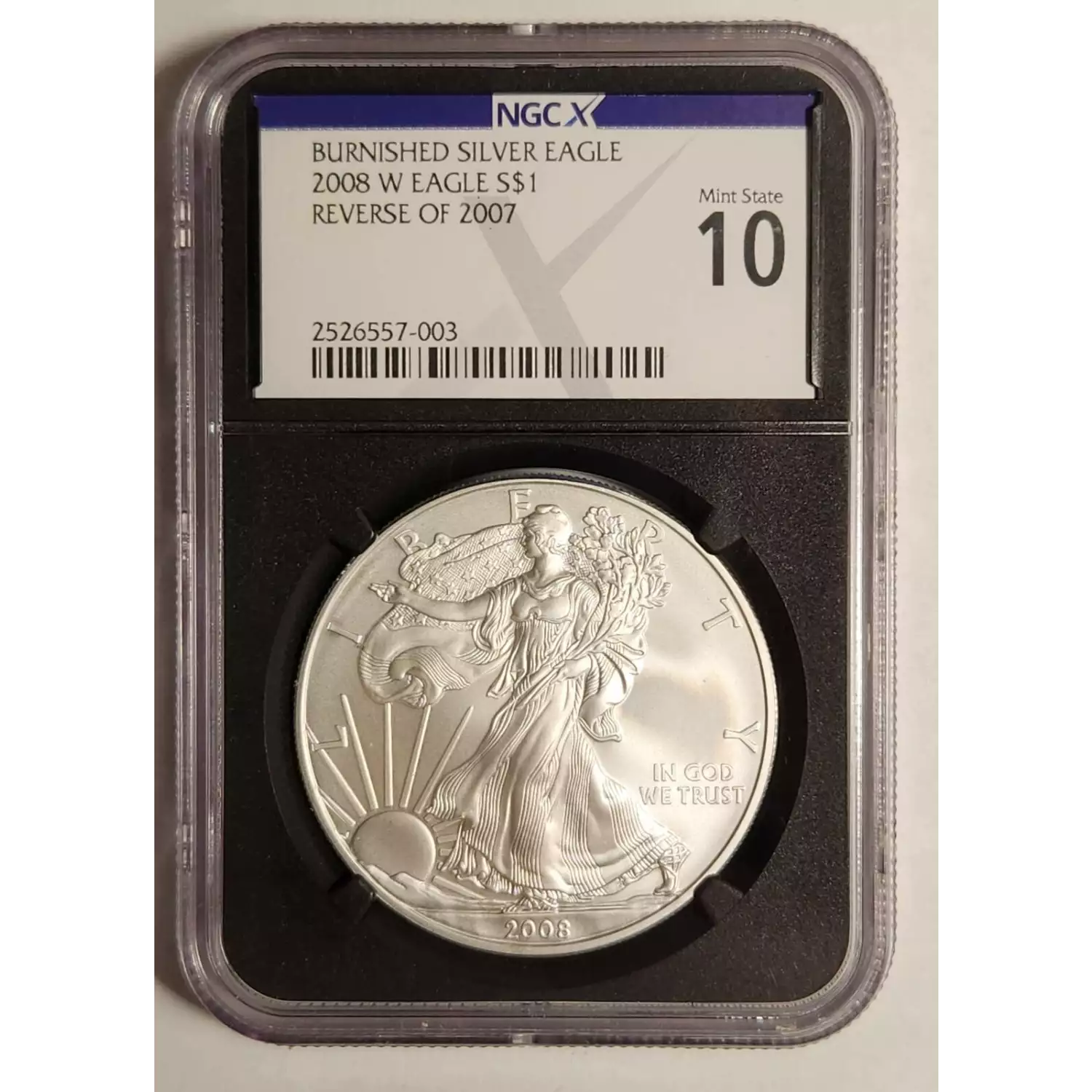 2008/7 Silver Eagles NGCX 10 W BURNISHED SILVER EAGLE REVERSE OF 2007