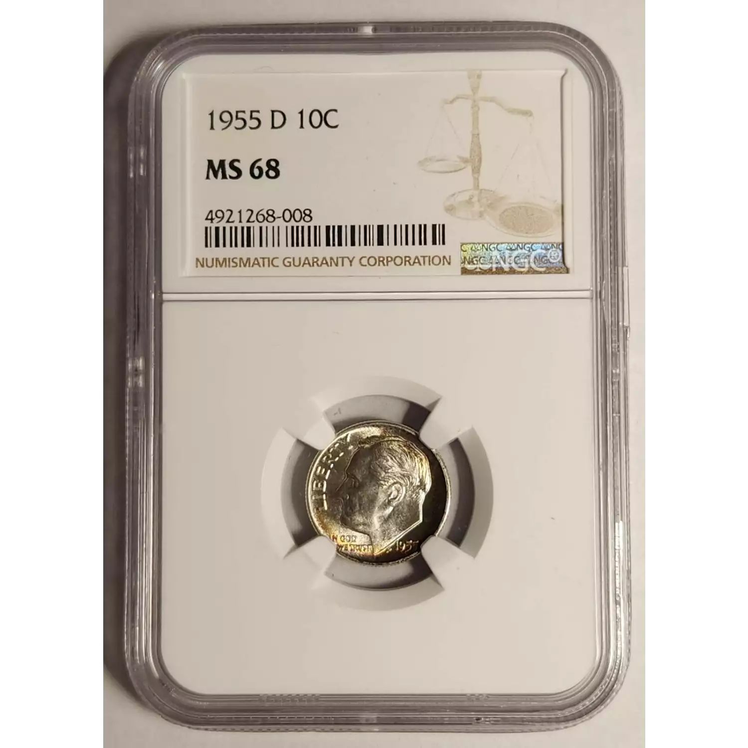 1955-D Dimes Roosevelt NGC MS-68 - PRETTY COLORS!