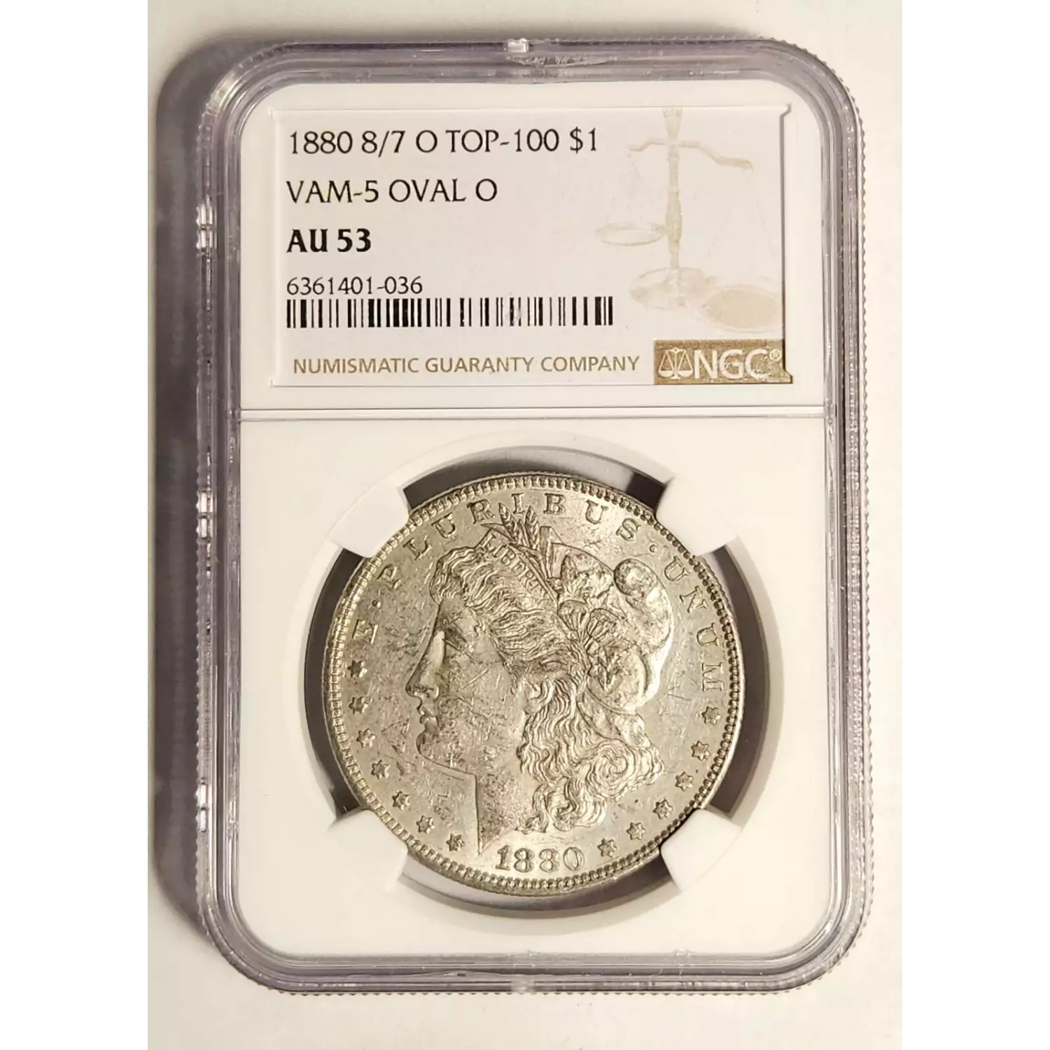 1880 8/7-O Morgan Silver Dollar NGC AU-53 8/7 O VAM-5 OVAL O - TOP 100