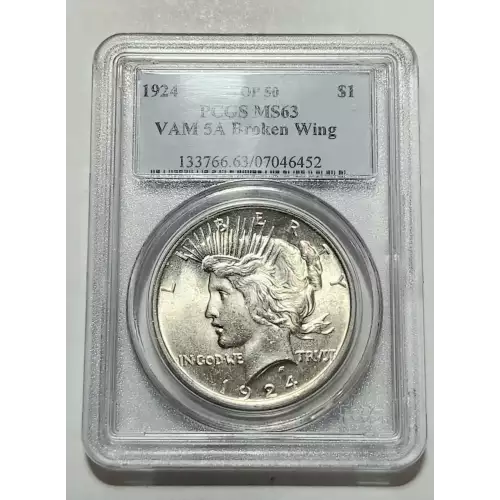 1924 Peace Dollar PCGS MS-63 GSA Hoard VAM 5A - BROKEN WING - TOP 50