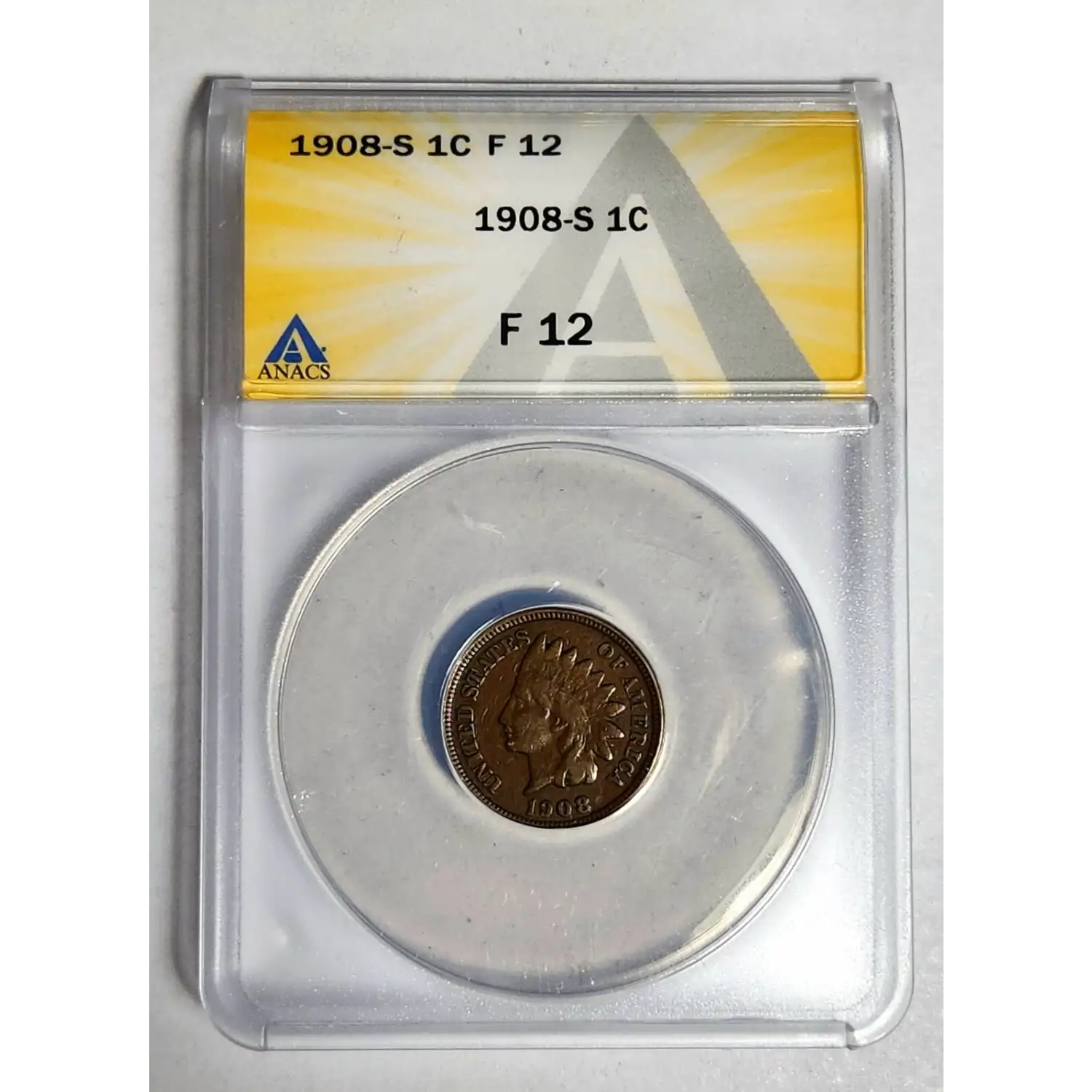 1908-S Small Cents Indian Head ANACS F-12
