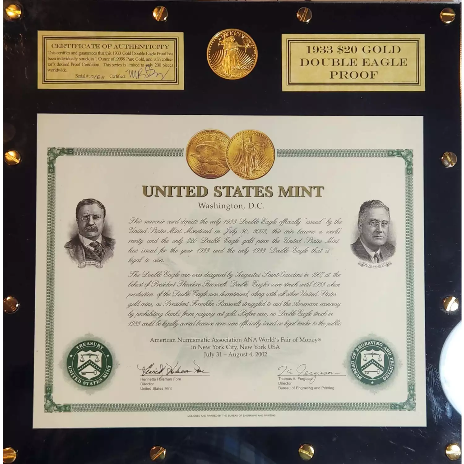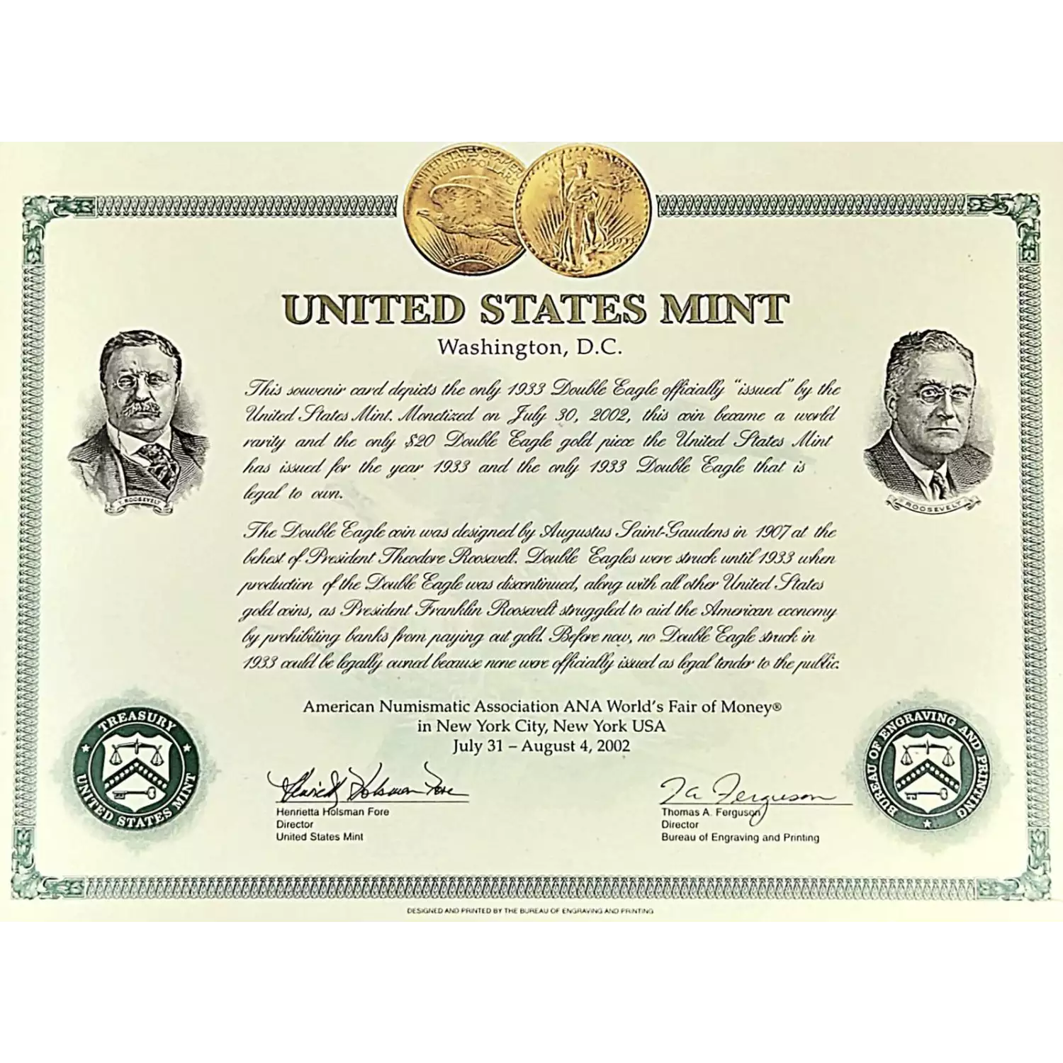 1933 Proof Proof $20 COPY