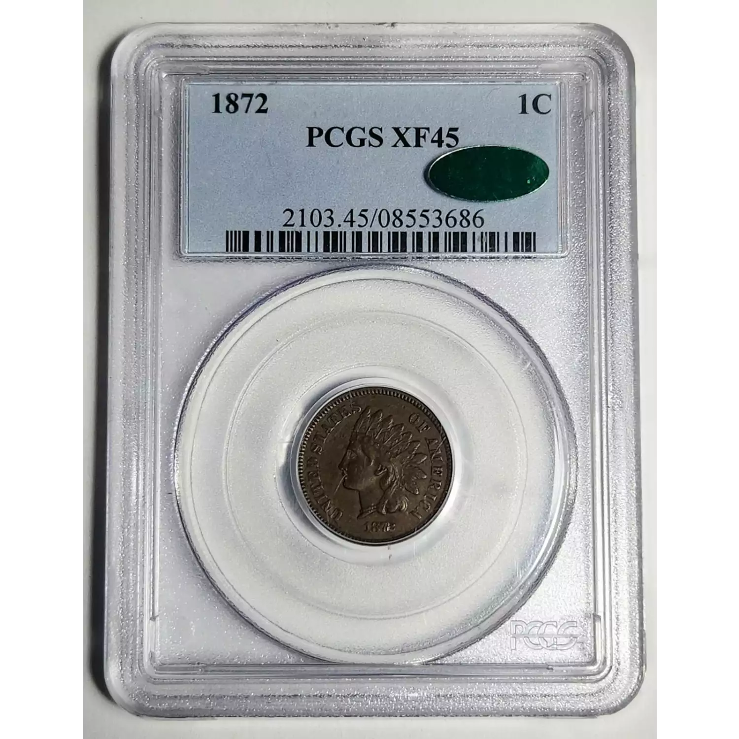 1872 Small Cents Indian Head PCGS XF-45 BN CAC