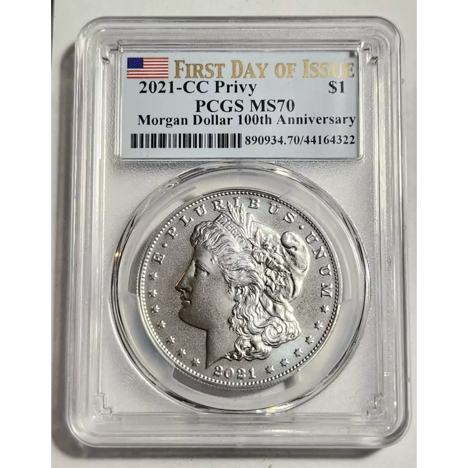 2021-CC Morgan Silver Dollar PCGS MS-70 - 100TH ANNIV - 1ST DAY OF ISSUE - WITH OGP